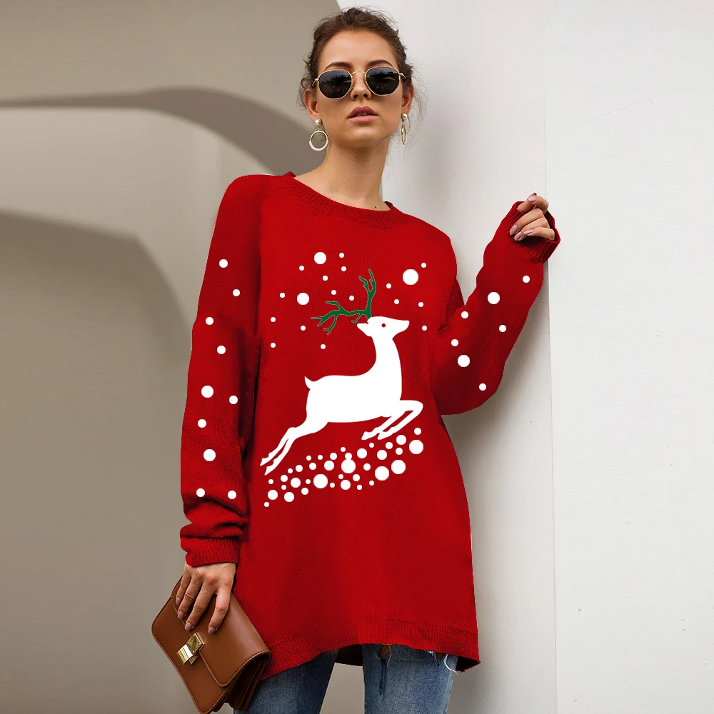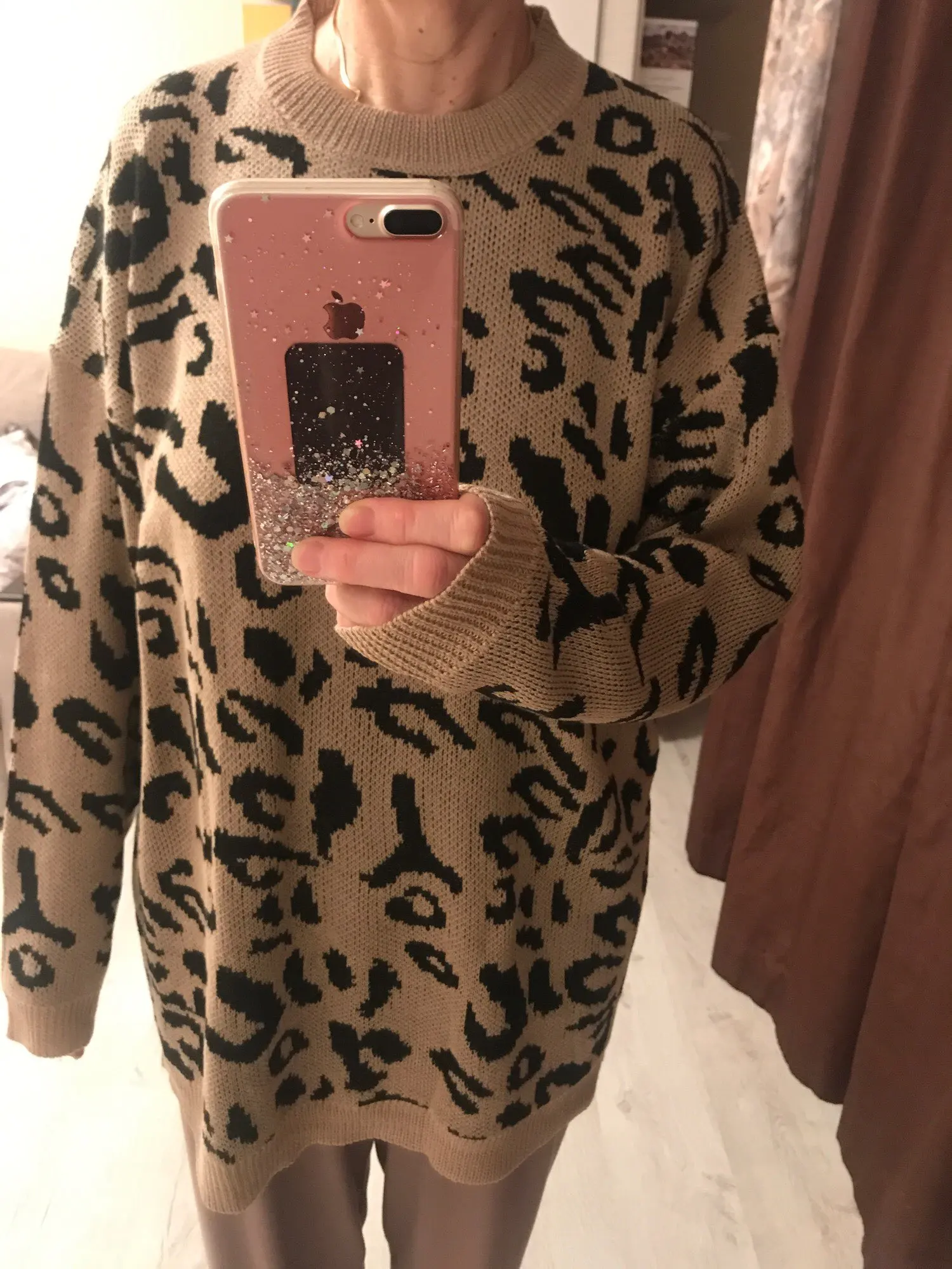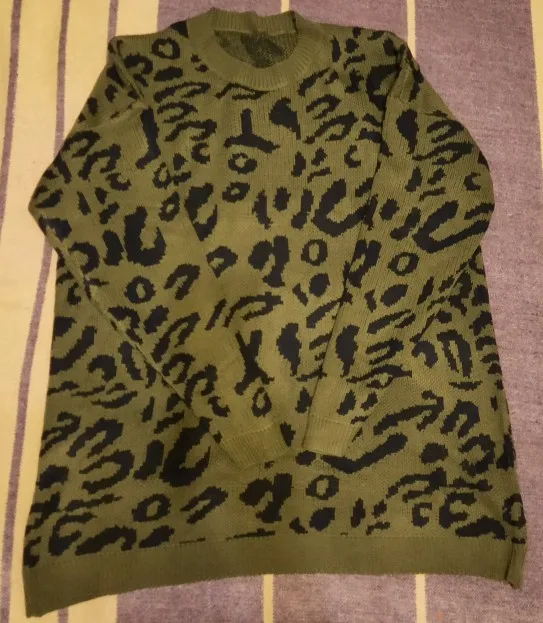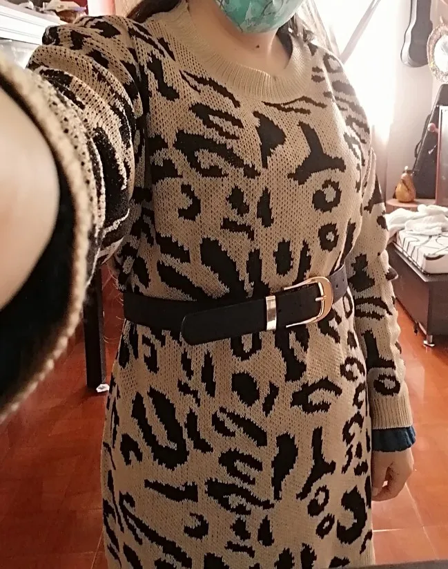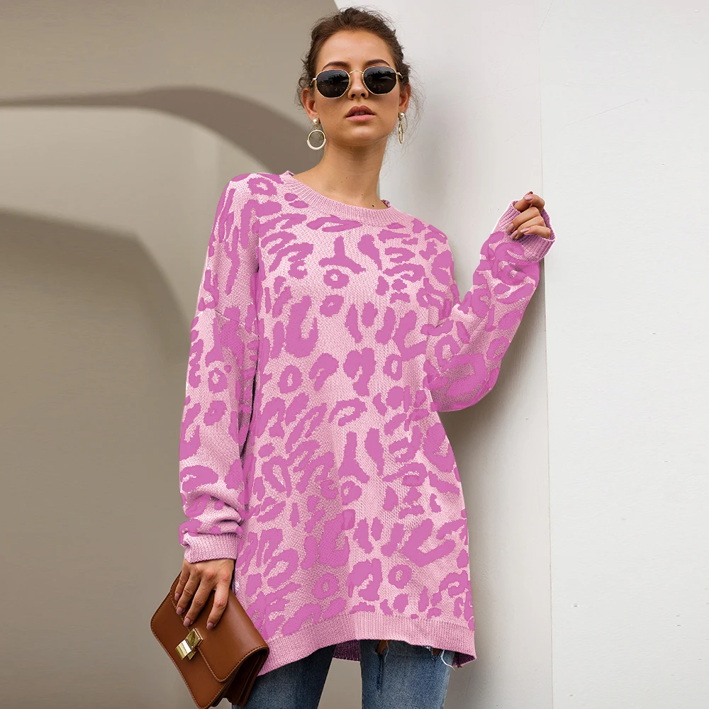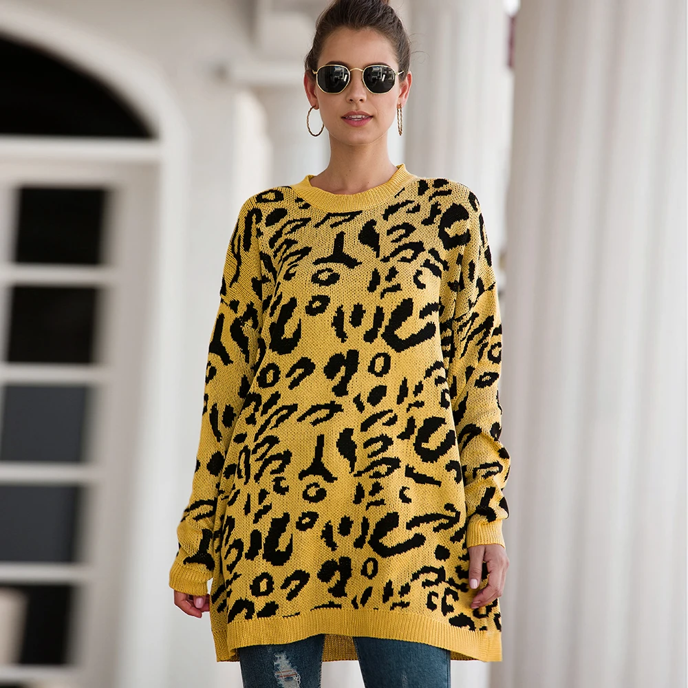 Женский длинный свитер, Свободный вязаный пуловер с леопардовым принтом, Осень-зима 2019