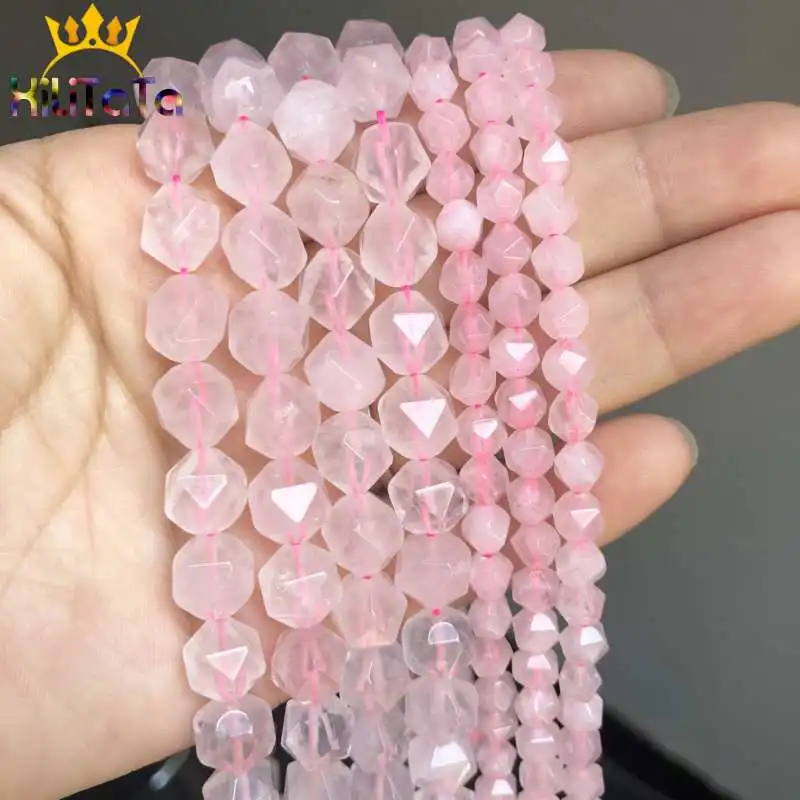 Граненые розовые Кварцевый Камень Бисер Круглые бусины-разделители для самостоятельного изготовления ювелирных изделий Браслеты ожерелье 15 дюймов нитки 681012 мм