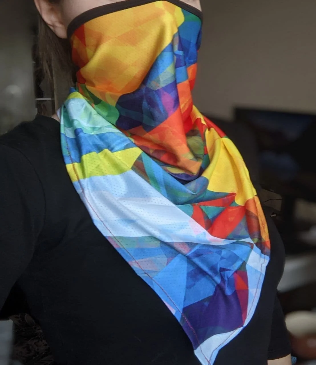 Принт напечатан не плохо, материал обычная тряпка, носить такое я бы не стал, выглядит с повседневной одеждой не очень, если носить не на лице то выглядит как пионерский галстук. Размер маленький, слишком тянет и прижимает нос. Размер подошел бы на ребенка, хотя я сам не очень то и большой.