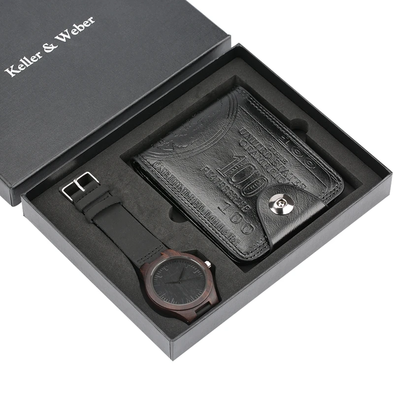 Feature 2men watch+wallet luxury present gift for boyfriend