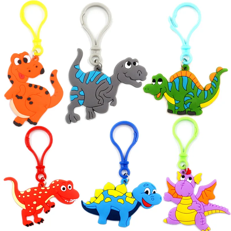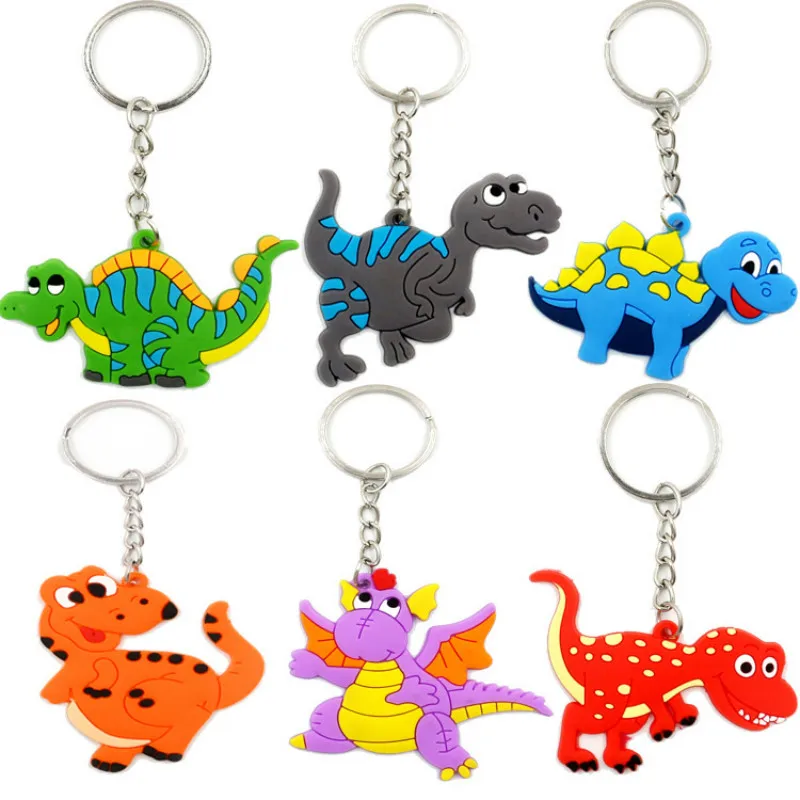 6 шт.партия, милые, с рисунками животных, динозавр ПВХ брелки для к...