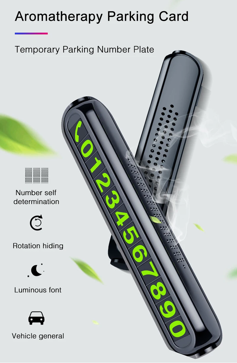 Новинка 2019, светящийся автомобильный стикер для временной парковки, табличка для номера телефона, автомобильные аксессуары с клипсами для вентиляции, освежитель воздуха