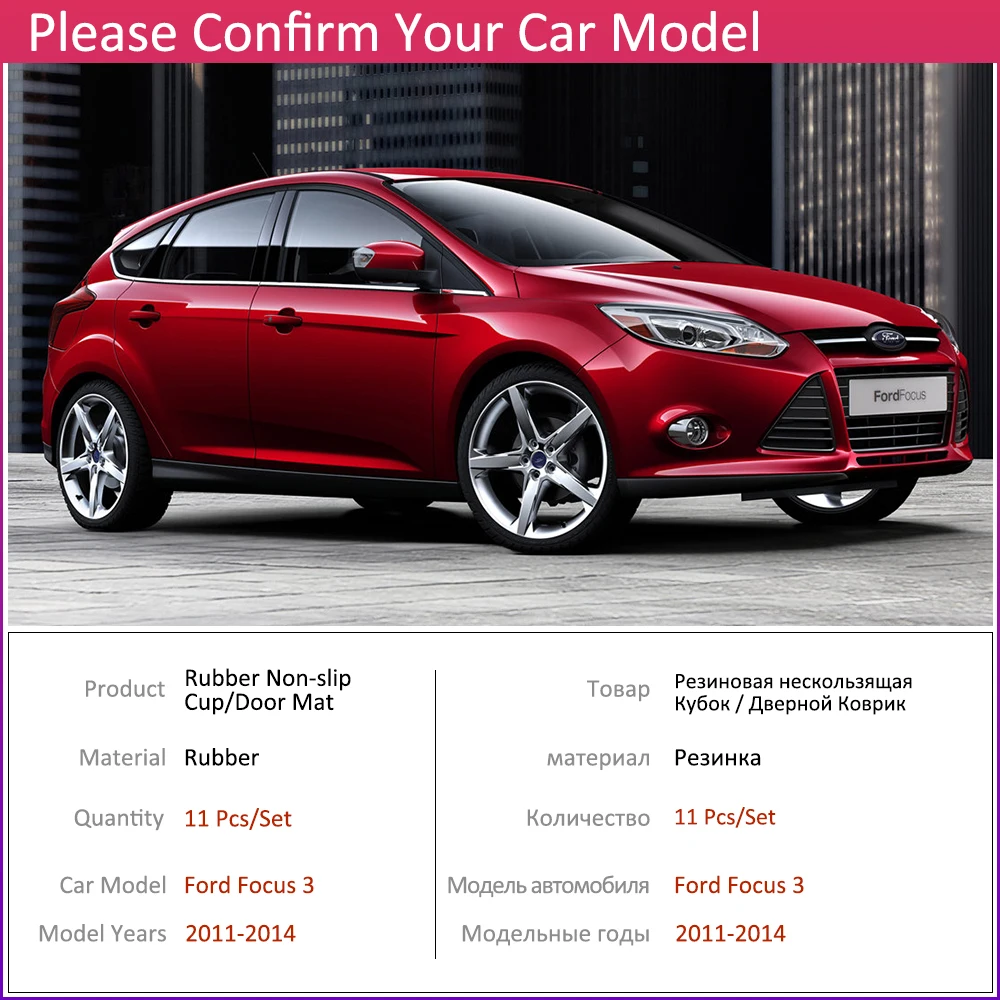 Противоскользящая резиновая подушка для чашки, дверной паз, коврик для Ford Focus 3 MK3 ST RS pre-facelift 2011 2014 2013, аксессуары, автомобильные наклейки