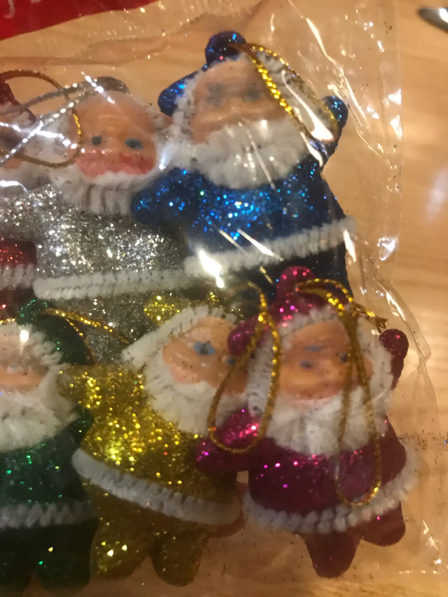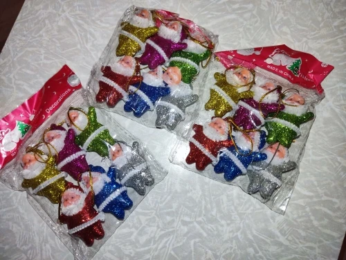 Лица дедов морозов плохо прорисованы, местами мимо наклеены глаза.