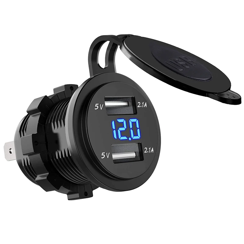 Двойное зарядное устройство USB, водонепроницаемая розетка, 2,1 А, 2,1 А, С вольтметром и проводом, 10 А, предохранитель для 12-24 В, автомобиля, лодки, мотоцикла