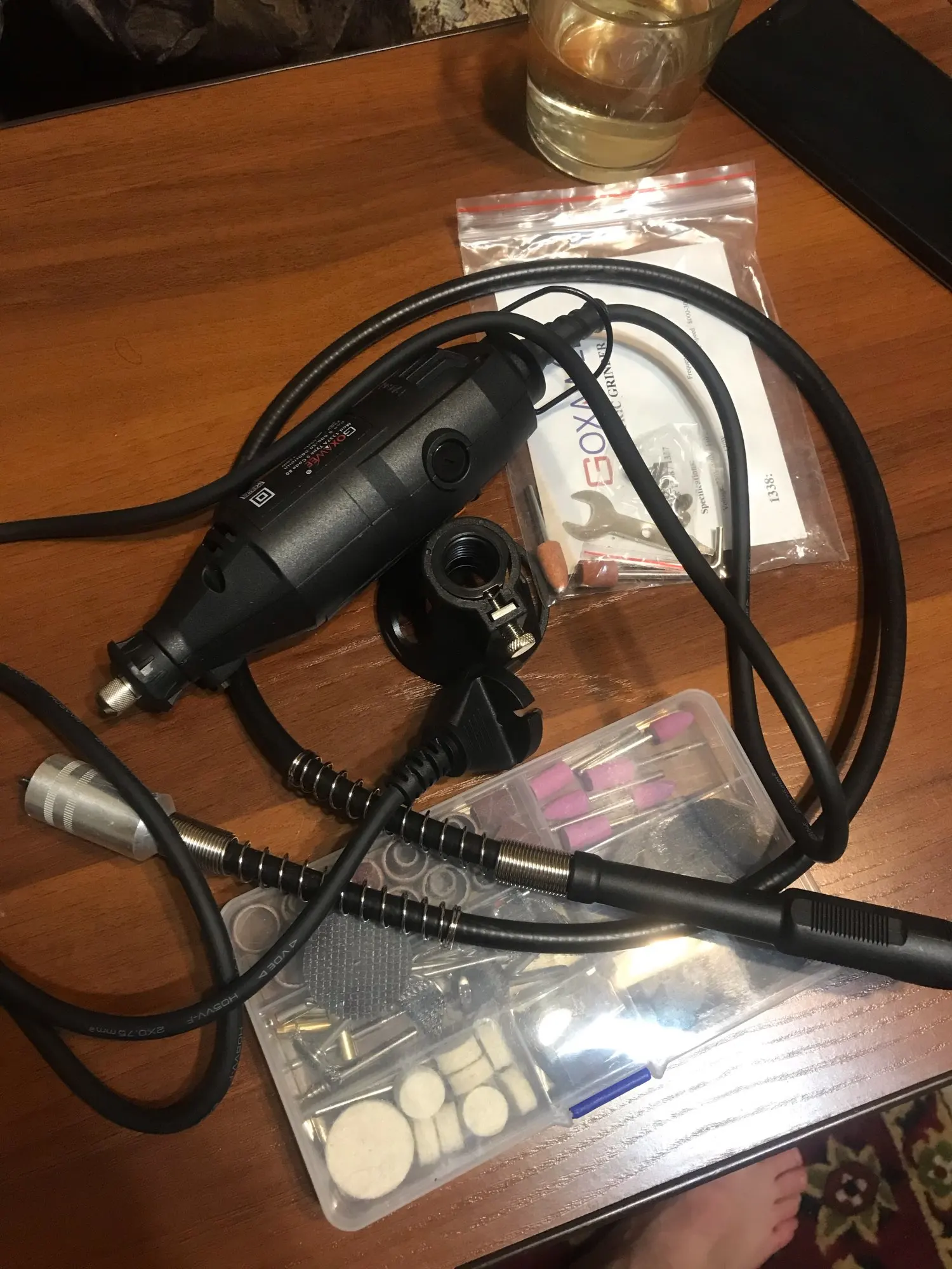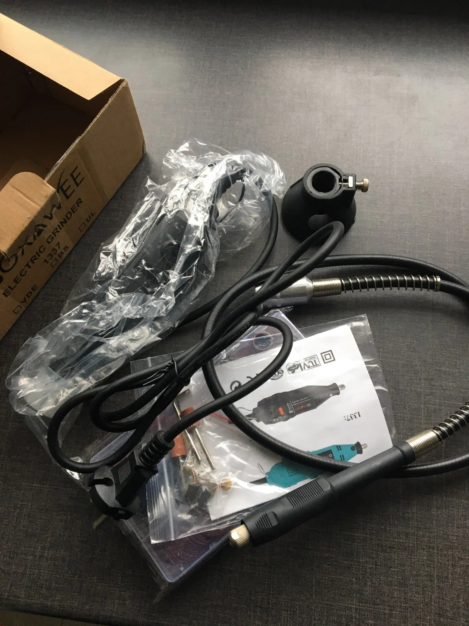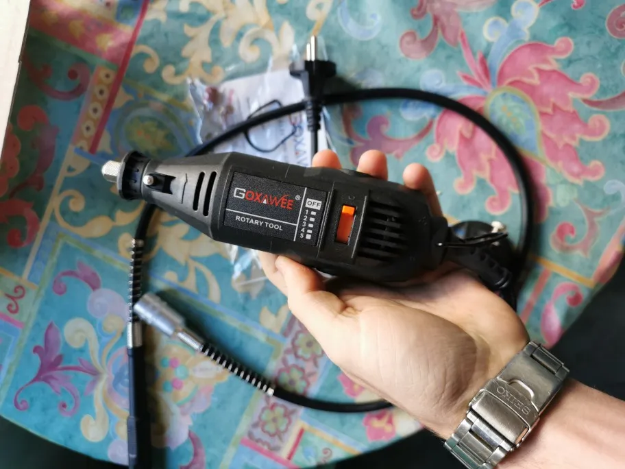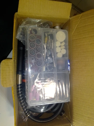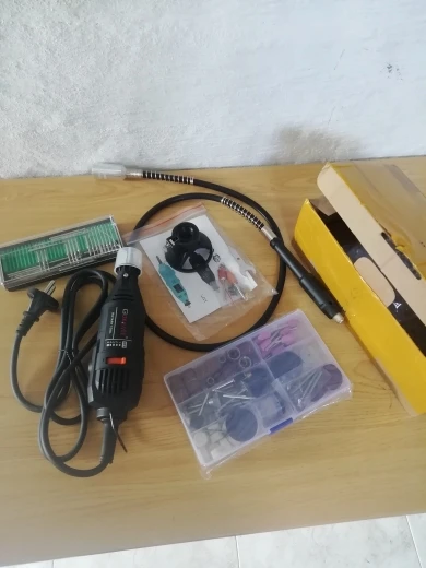 доставка быстрая (из России), комплектация полная. сам гравер размером меньше чем ожидалось, вполне удобно сидит в руке. работает не громко. в целом, все устраивает (насадки качеством конечно не на 5) посмотрим как поведут себя в использовании.