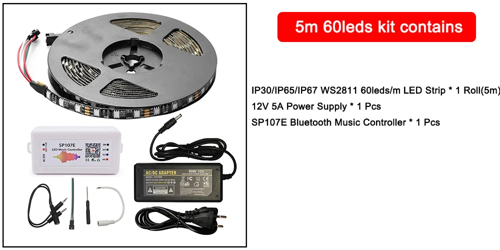 Музыкальная светодиодная полоса освещения комплект 12 В WS2811 полоса музыка синхронизация SP107E приложение для телефона контроллер с адаптером вечерние гостиной спальни ТВ