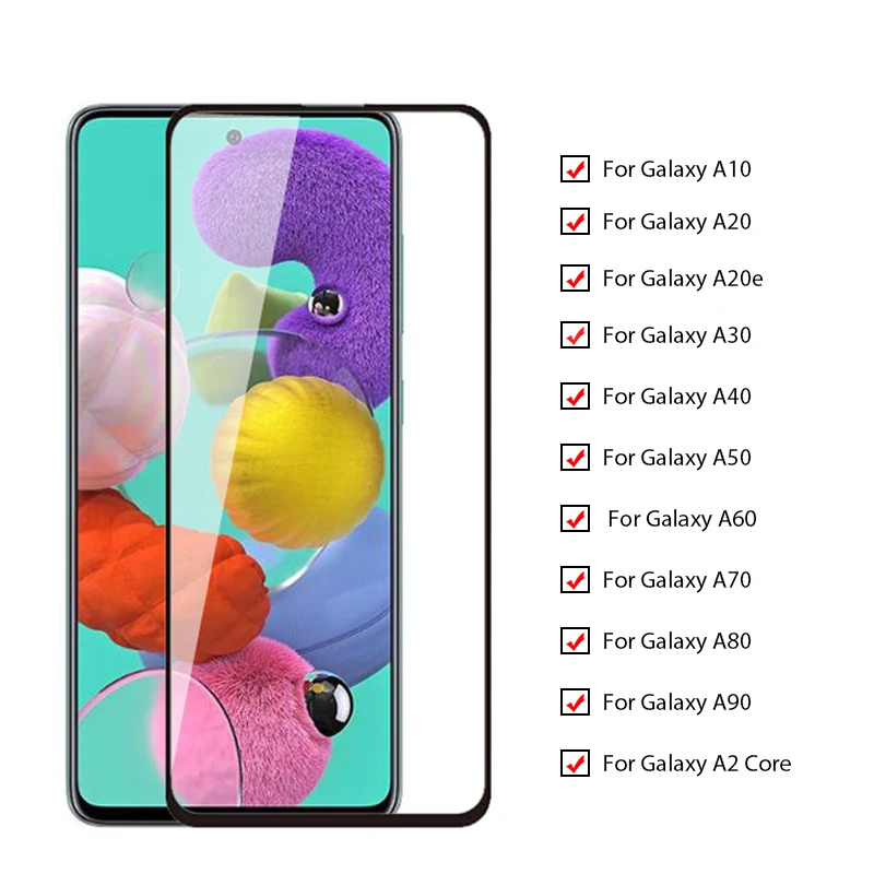 Защитное стекло Felfial для смартфона Samsung Galaxy A2CoreA10A20A20EA30A40A50A60A70A80A90, покрытие 9D, цвет рамки черный