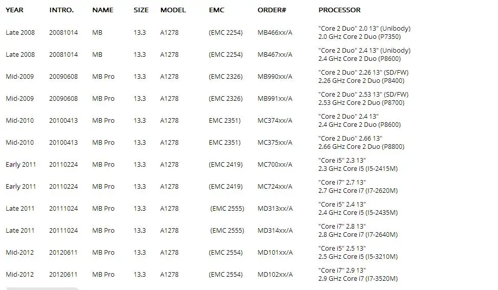 Номер моделиfor Macbook A1342 A1278