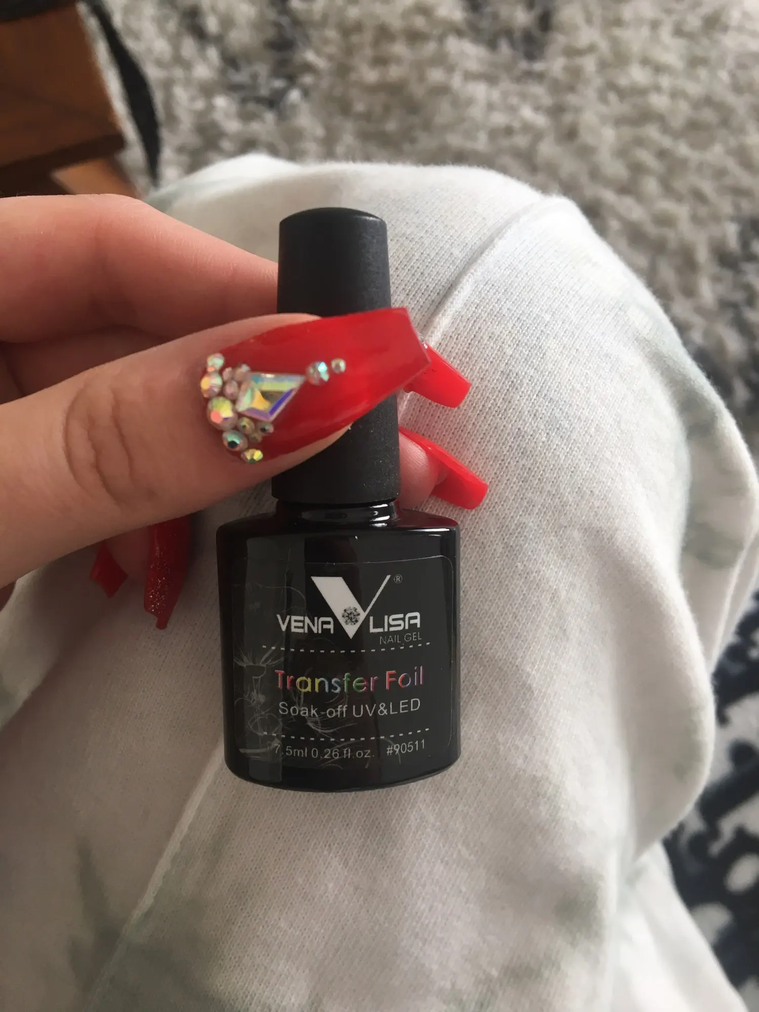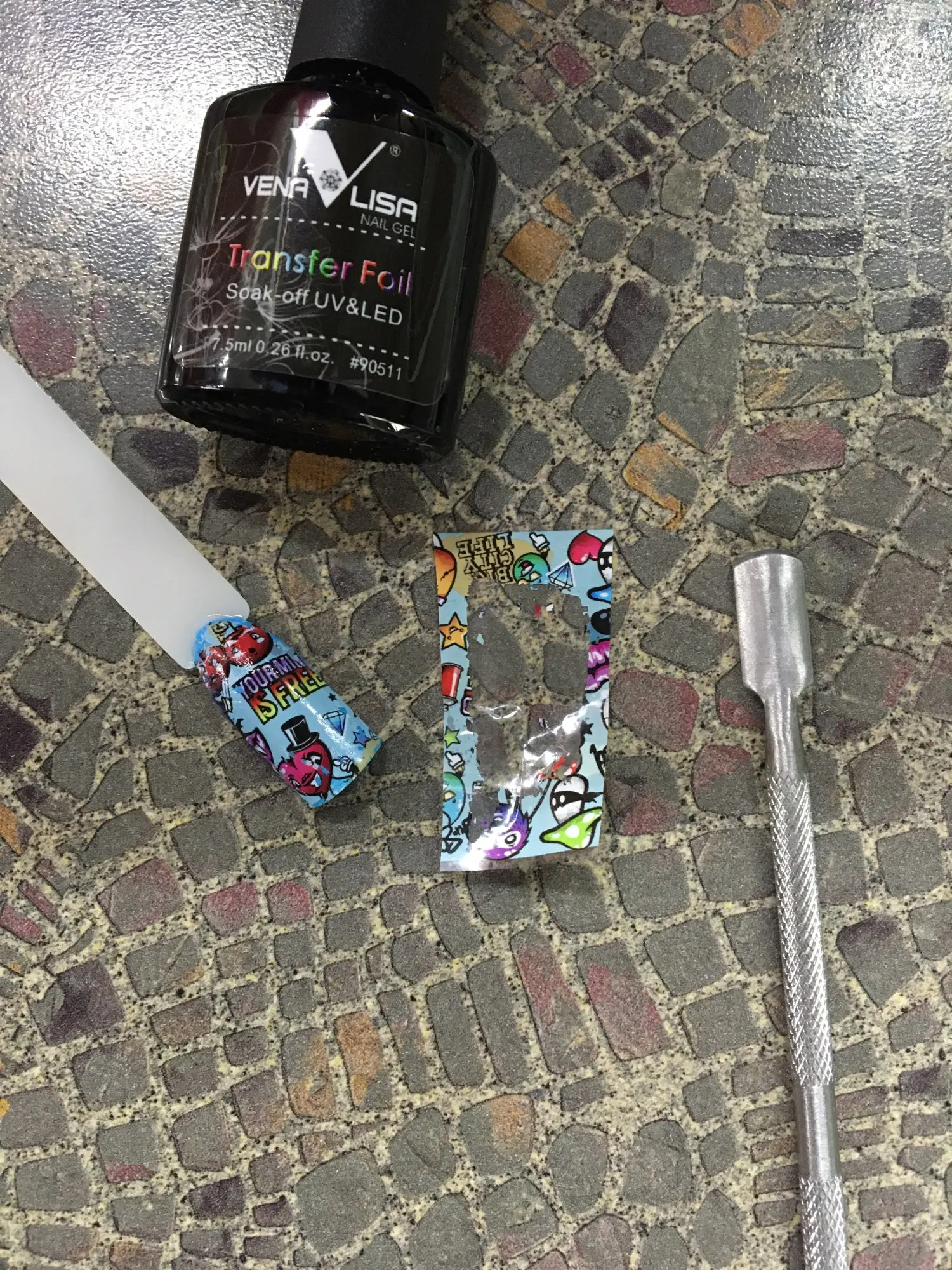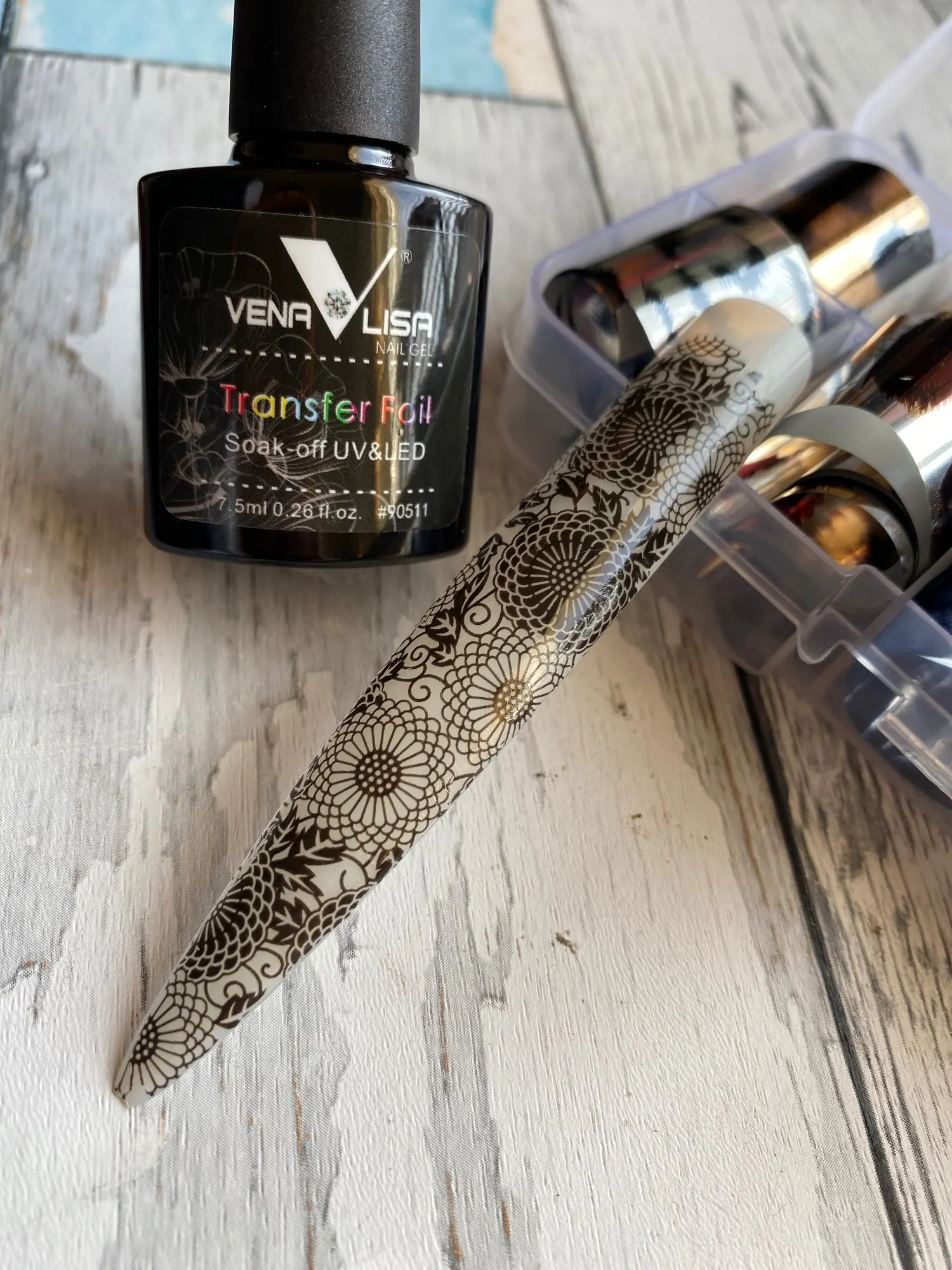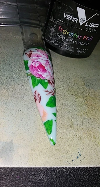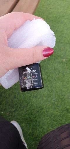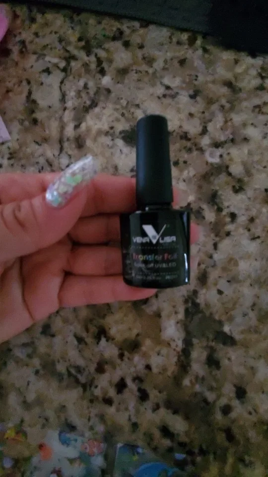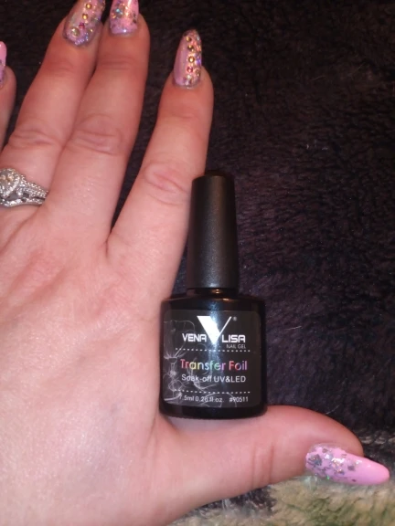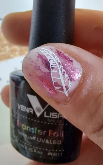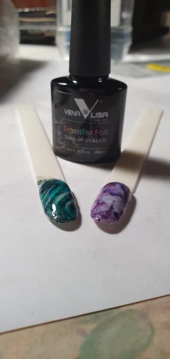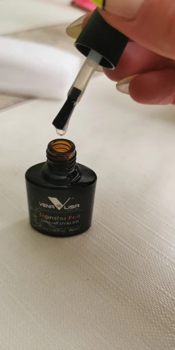 Он работает хорошо, но когда вы пытаетесь приклеить фольгу, всегда есть точка в дизайне, который вы хотите использовать, которая совсем не прилипает. В конце концов, он работает так же, как и любой другой клей для переноски фольги. Мне нравится, что это ультрафиолетовый, он высыхает 30 секунд и готов, но будьте осторожны с дизайнами.