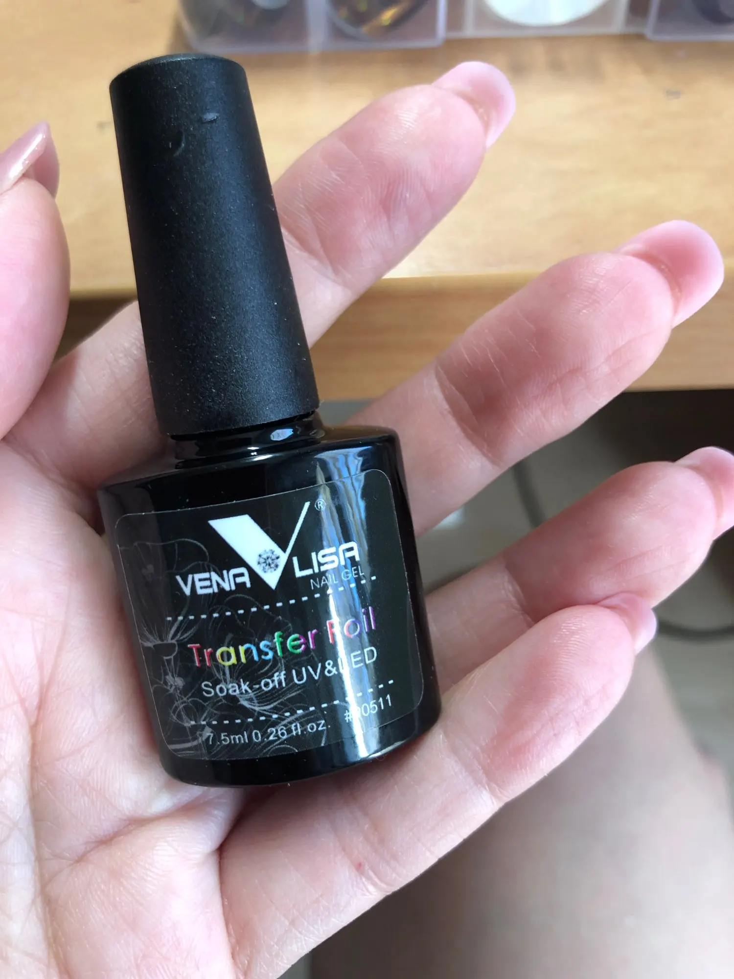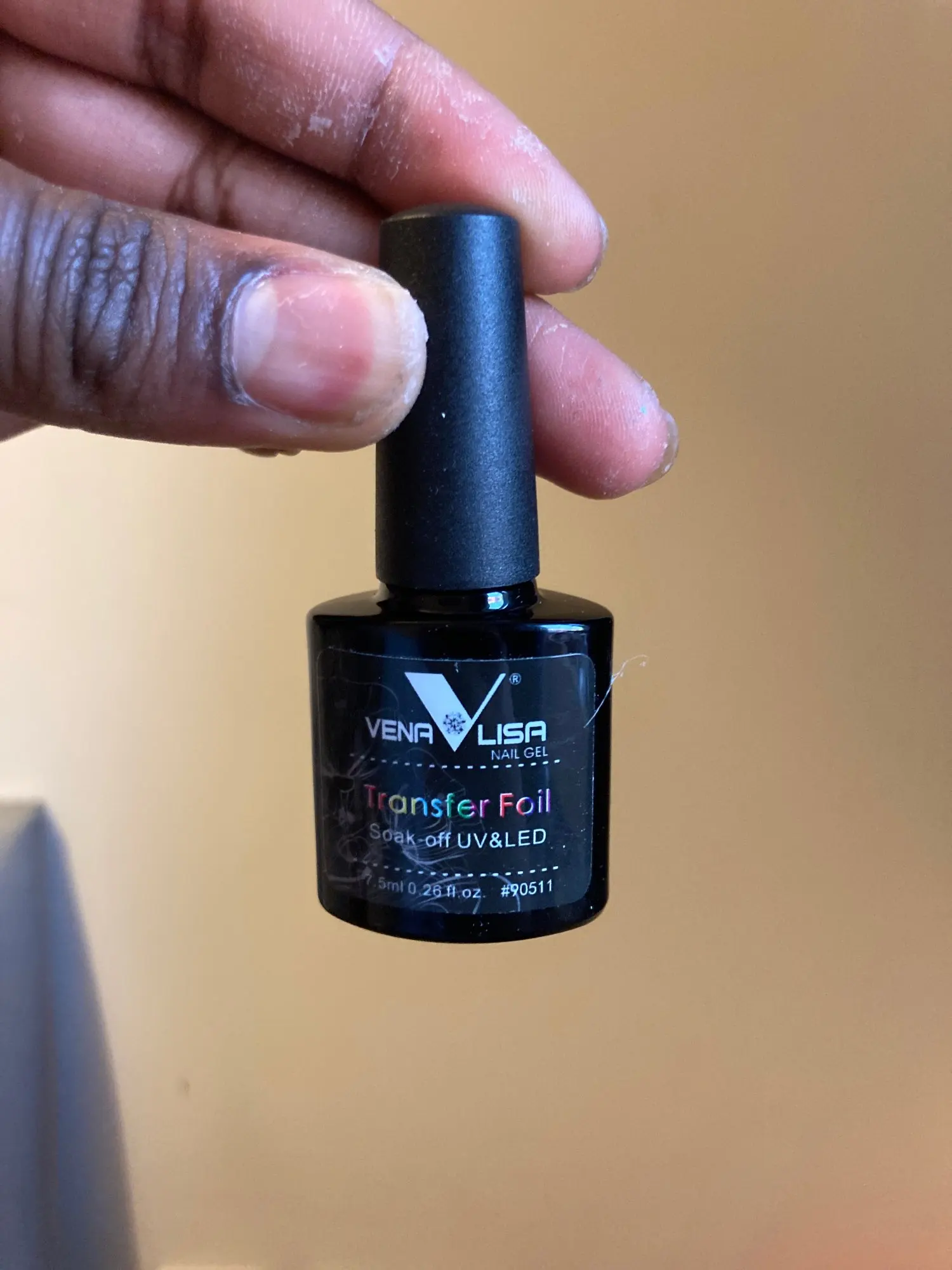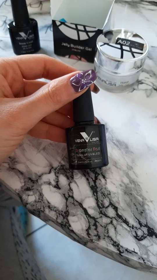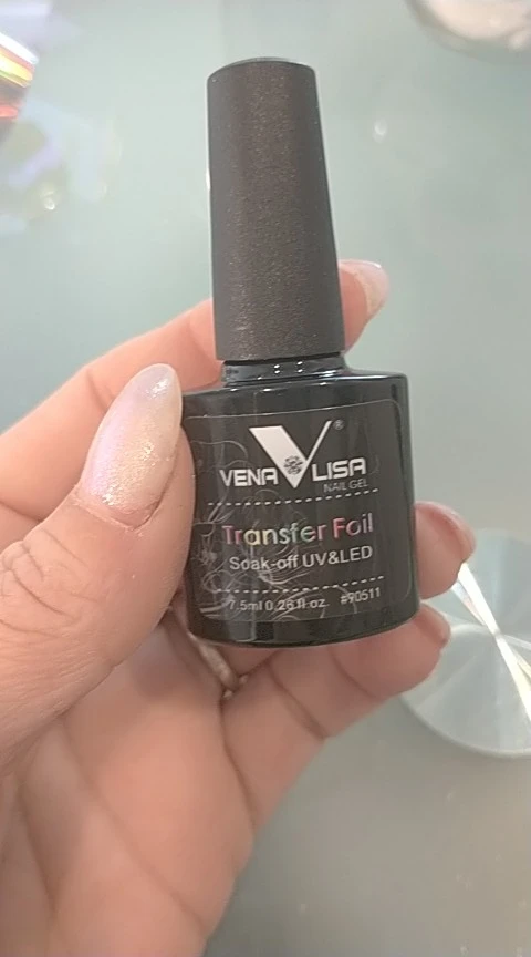 Очень хороший клей. Способ: Распределила клей по ногтевому ложу, в лампу на 1 минуту. Наклеила фольгу в середину. После того, как хорошо проклеили середину, пошла клеить бока. Очень хорошо приклеить возле кутикулы (пройтись несколько раз). Оторвать не спеша фольгу. Где не проклеилась. Можно аккуратно пройтись ещё раз. Всем успехов