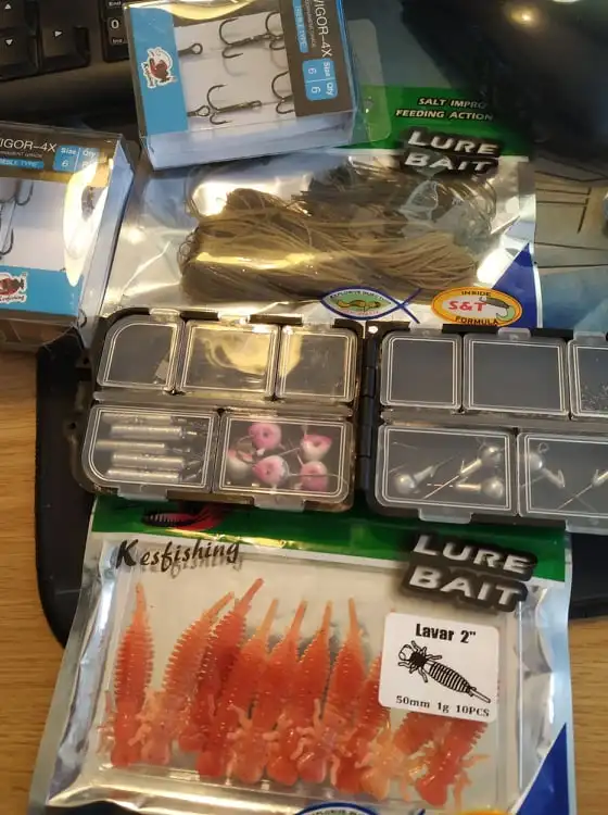 рНа пергий погляд непоганий силікон, має виражений запах креветки, тактильно м'який та гнучкий. Доставка до Ужгорода 3 неділі. Ьрек відсліжувався до України. По Україні доставка два дні новою поштою, кур'єр зателефонував та привіз до дому. Замовляв цілий набір, декілька пачок гачків відправили у подарунок.