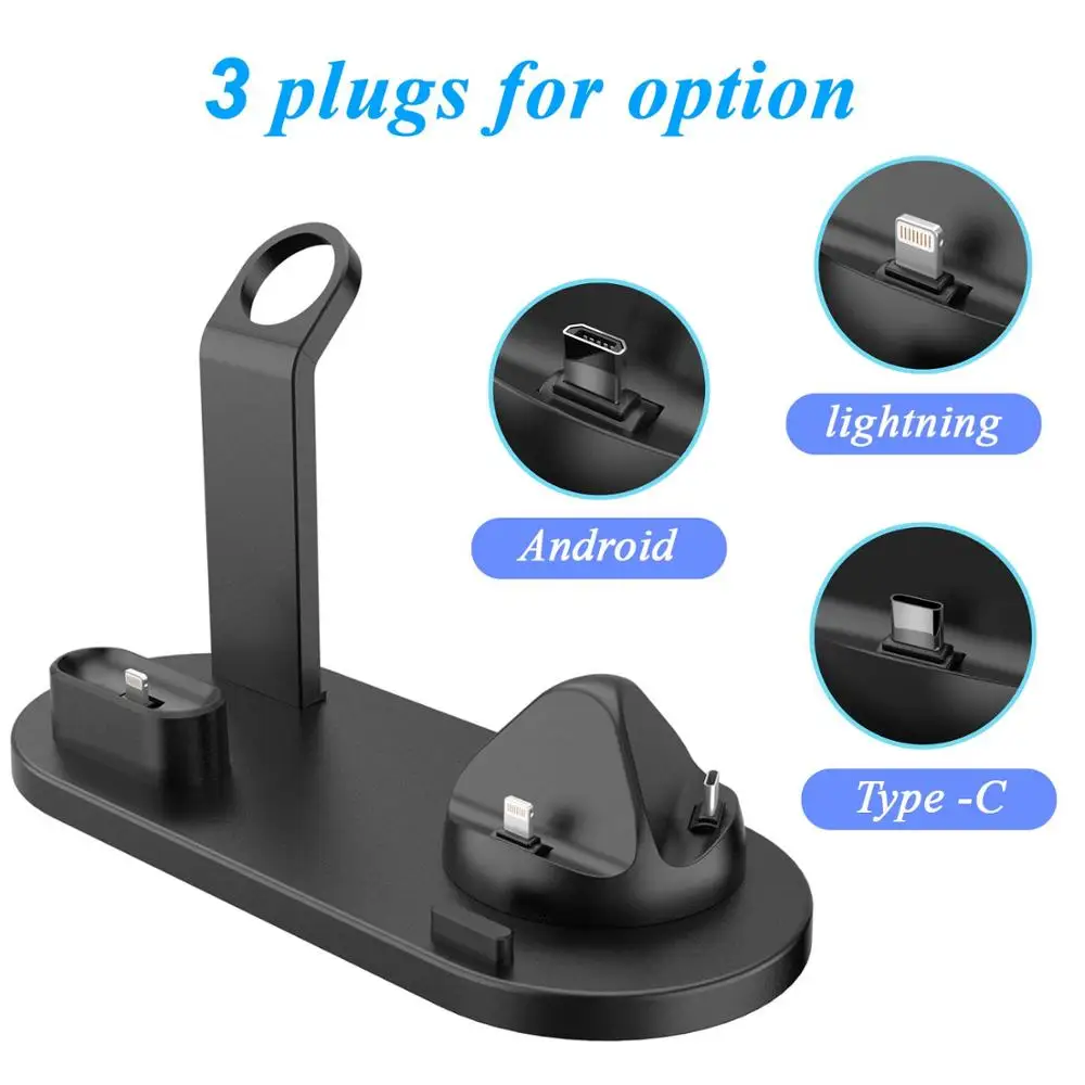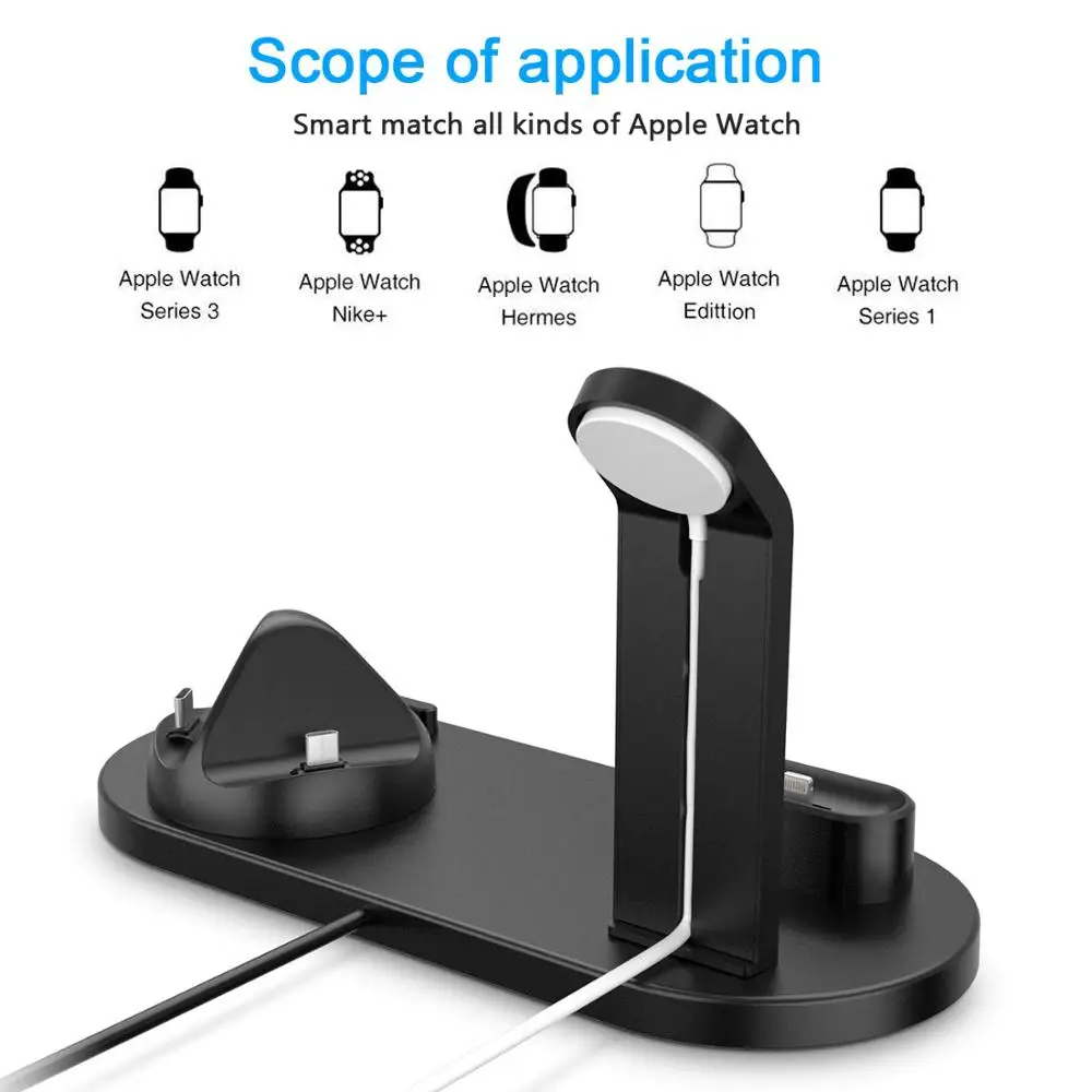 Цвет Черный/белый Функция: Подставка для телефона/зарядное устройство для телефона, зарядное устройство для apple watch, зарядное устройство для airpods Материал АБС-пластик Название продукта: Многофункциональная подставка для зарядки