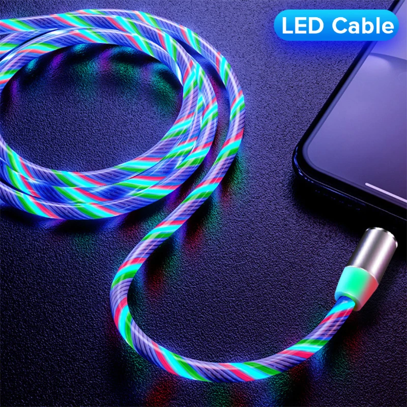 Светодиодный магнитный кабель 1 м, USB Type C, шнур, светящийся провод для передачи данных для iPhone, Samsung, Huawei, Xiaomi, мобильный телефон