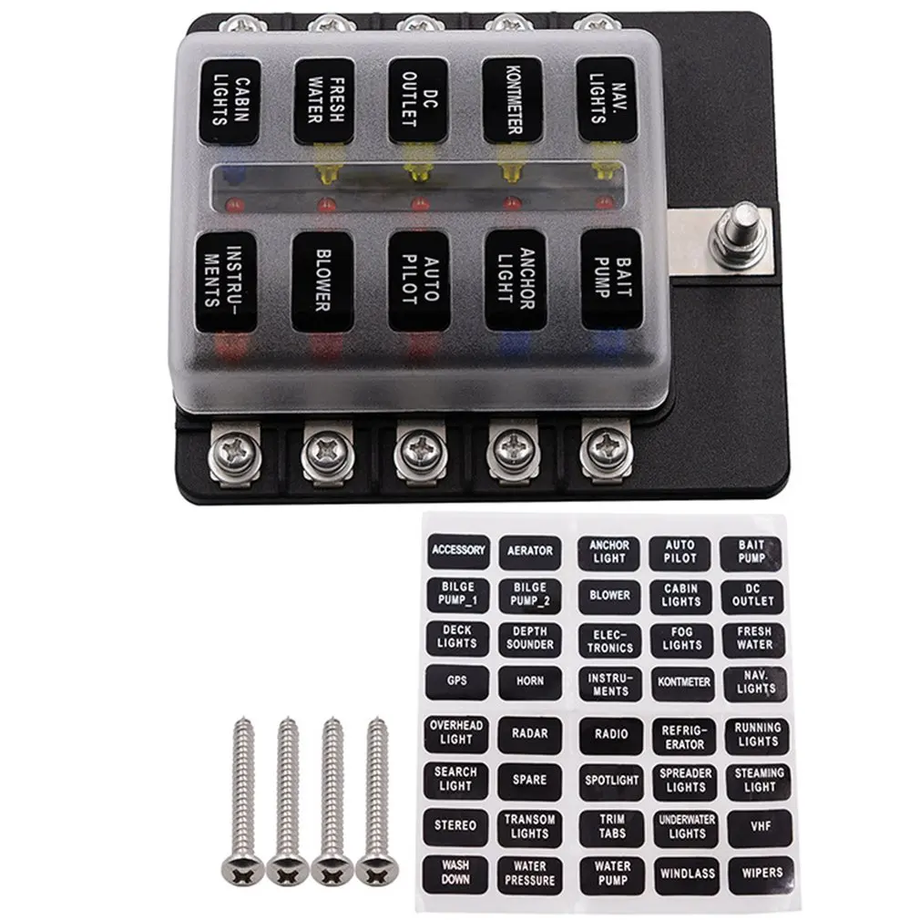 32 В пластиковая крышка предохранителя держатель M5 шпилька 12 способов лезвие с Светодиодный индикатор светильник для авто лодка морской Трайк