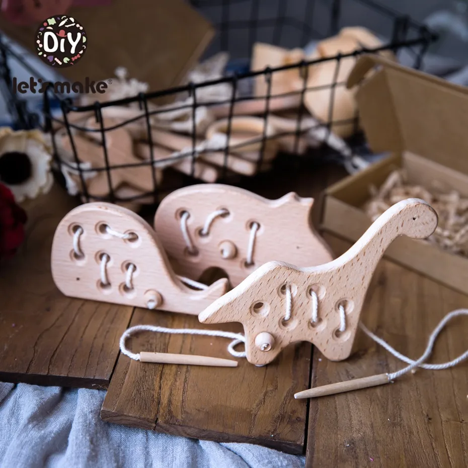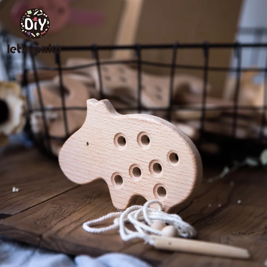 Деревянный Прорезыватель со шнуровкой, развивающие игрушки в виде ж...
