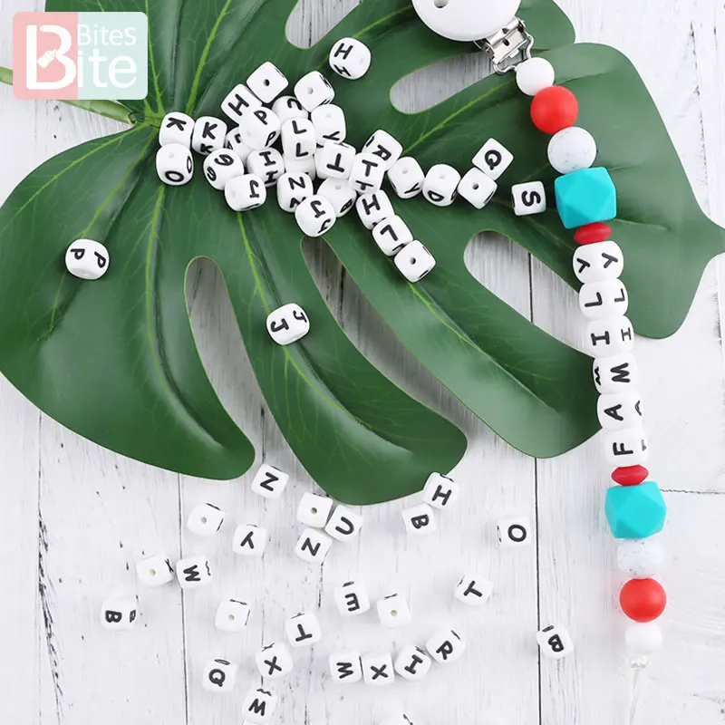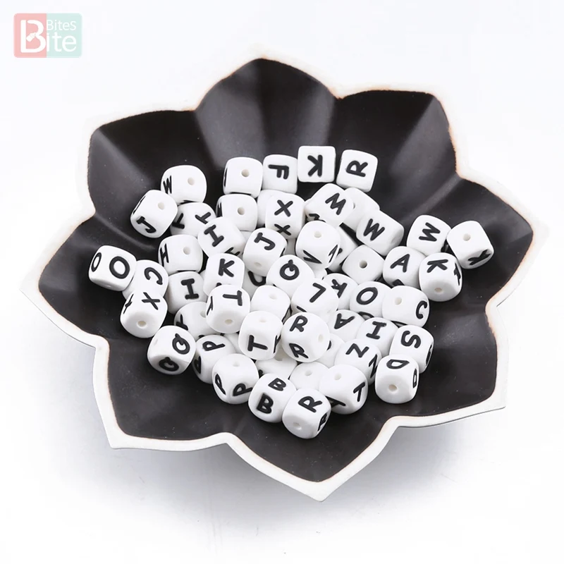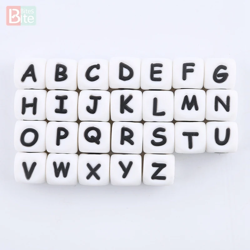 10 шт., силиконовые бусины с буквами английского алфавита, 12 мм