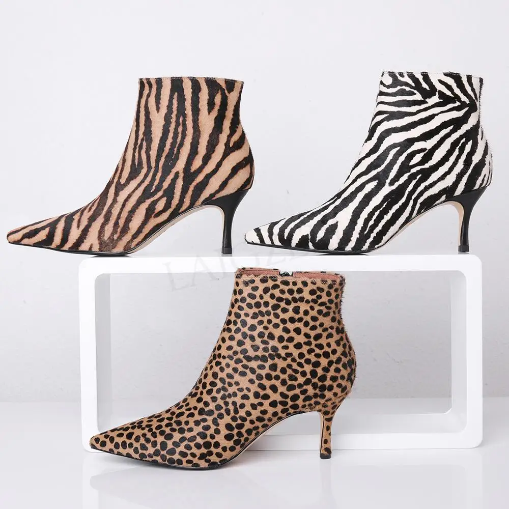 Laigзем 2020 модные женские ботинки на каблуке с котятами короткие сапоги с зеброй зимние женские вечерние ботинки для шоу женские ботинки размеры 34-39