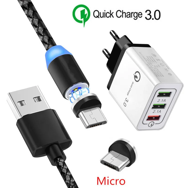 Магнитное зарядное устройство с Micro USB кабелем и QC 3,0 USB быст...