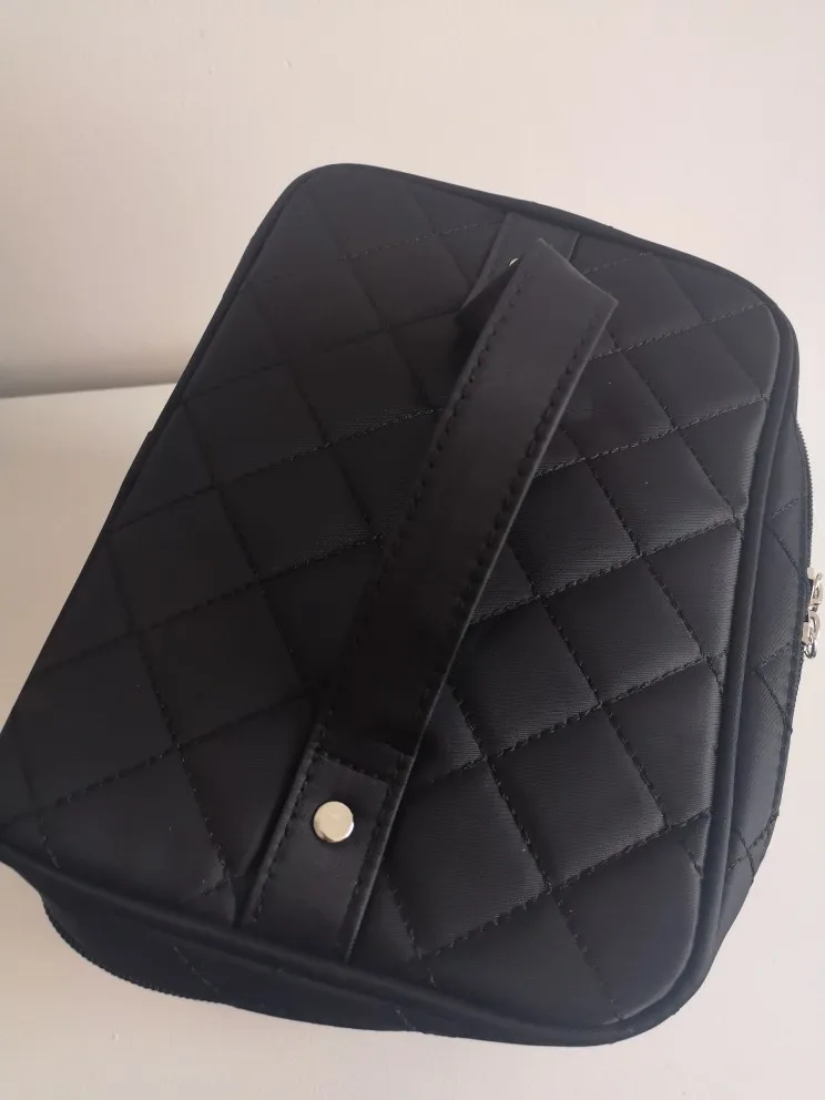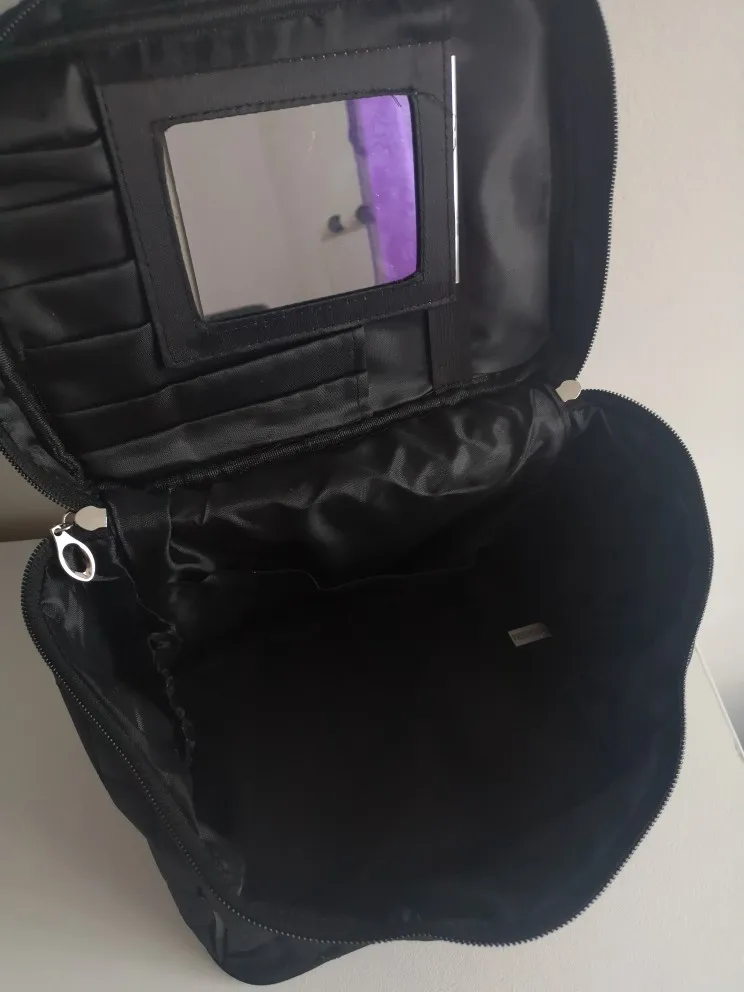 Пришёл с разбитым зеркалом, а так в общем хорошая и вместительная косметичка.