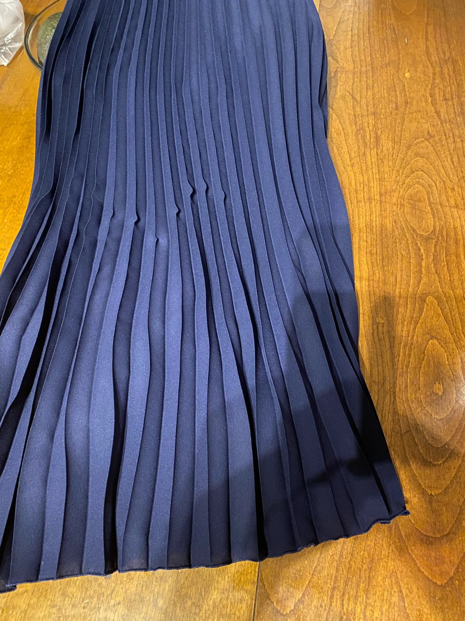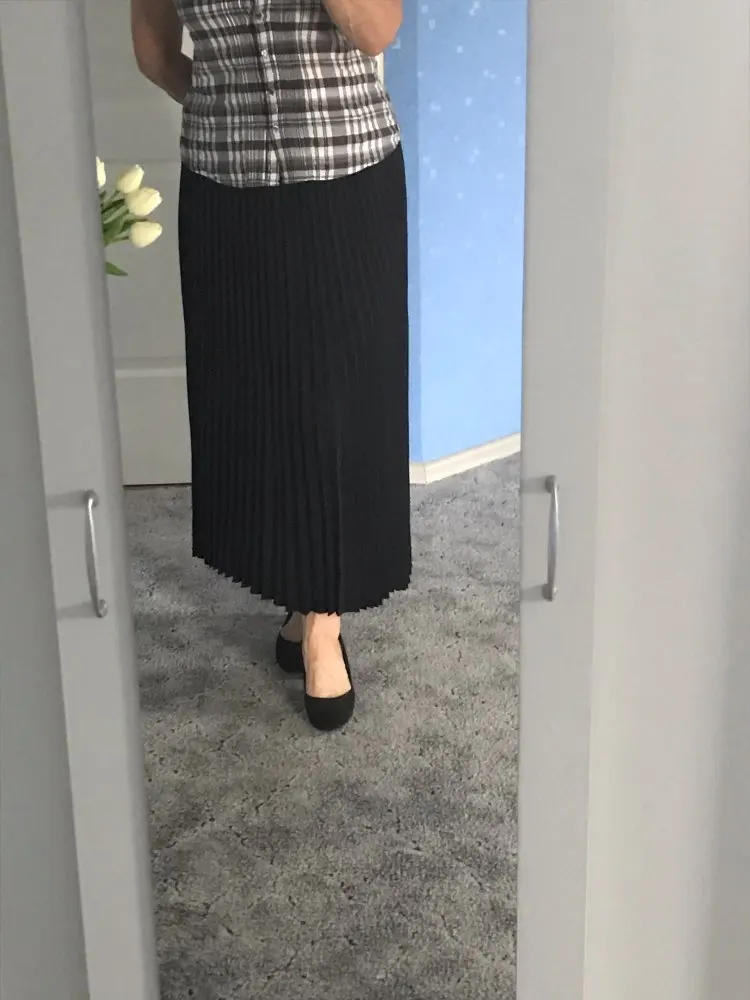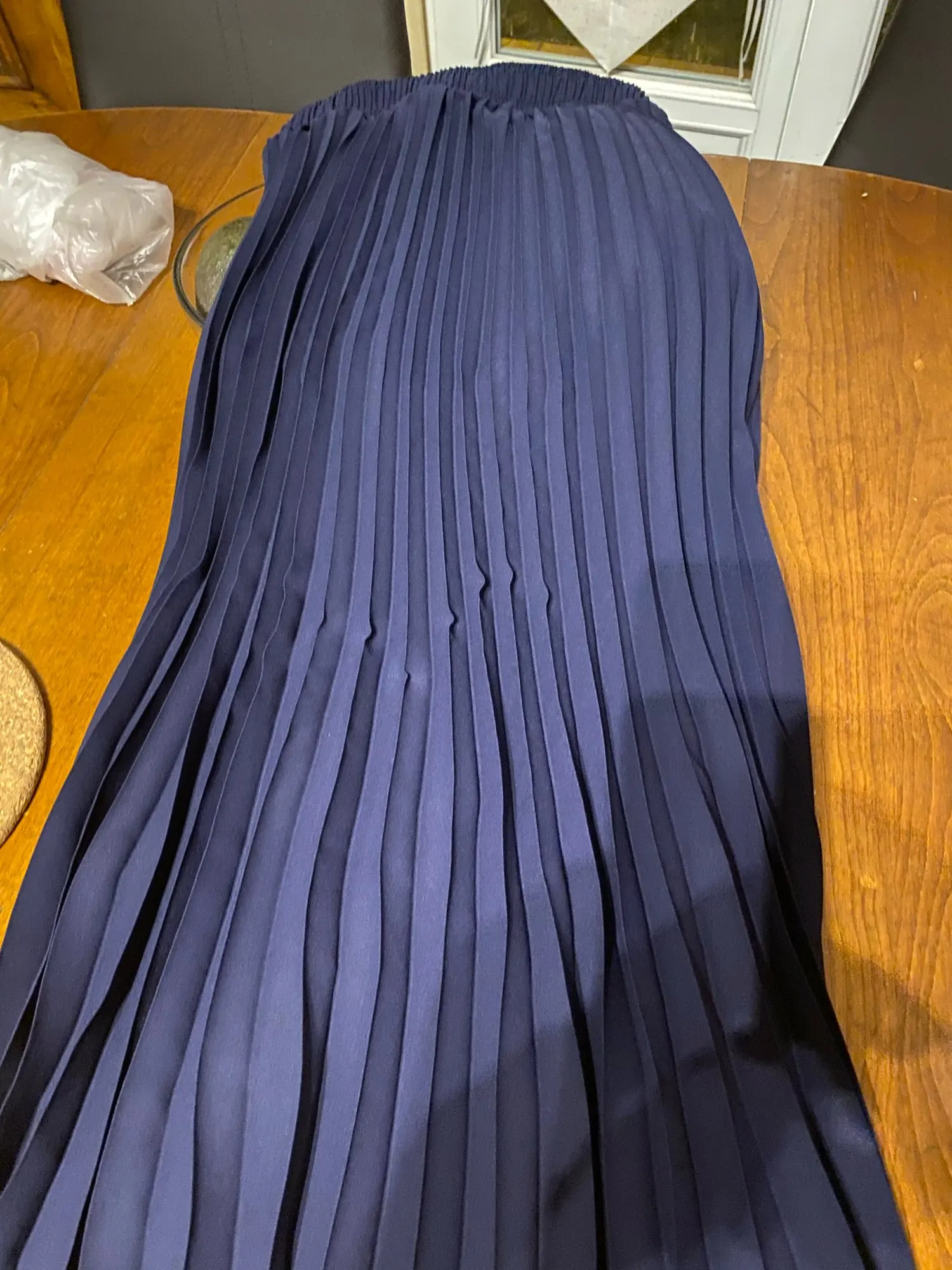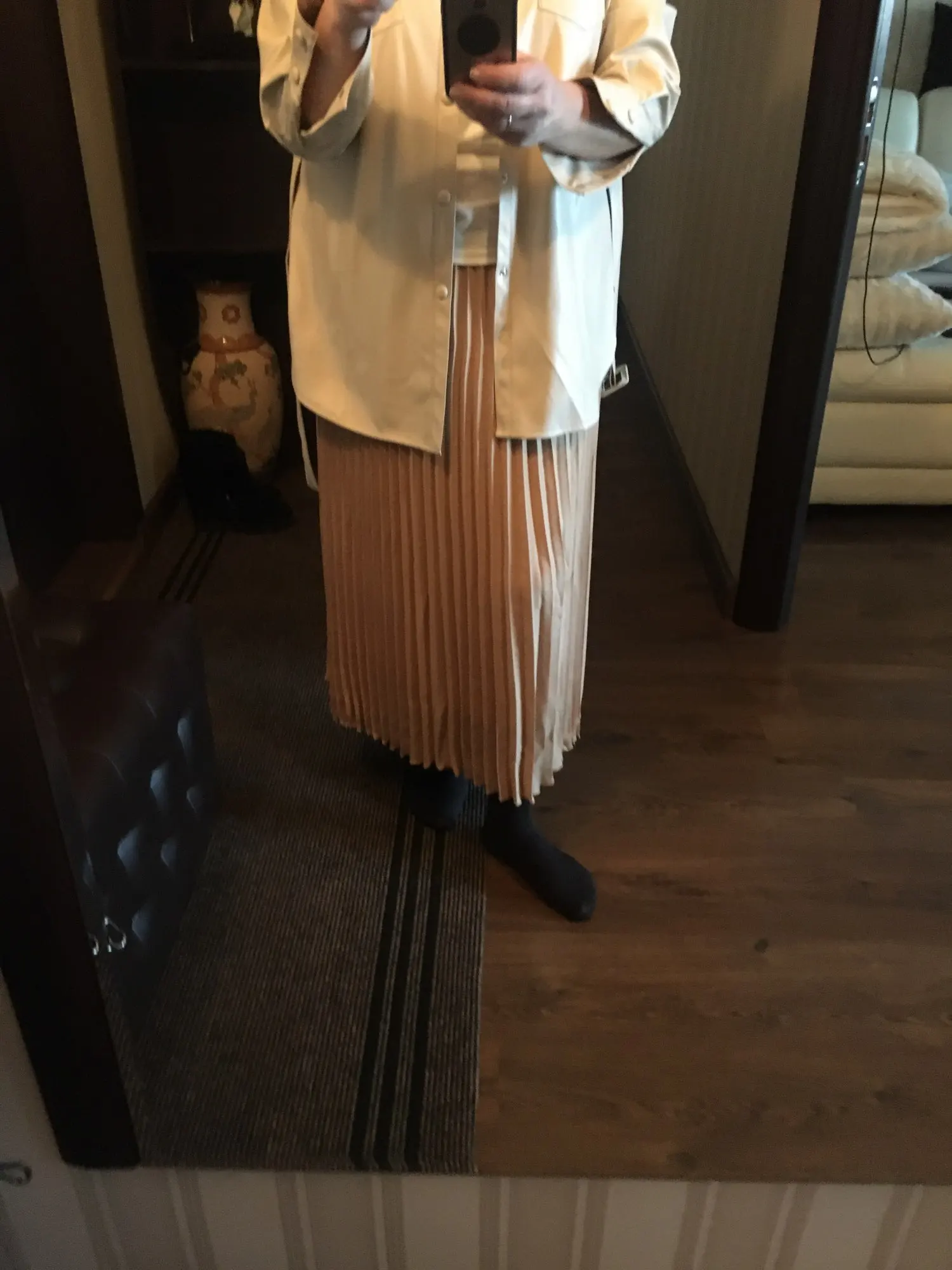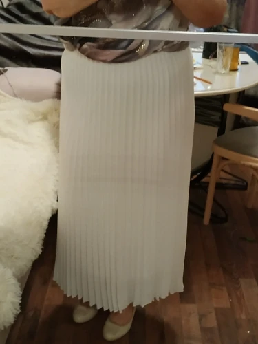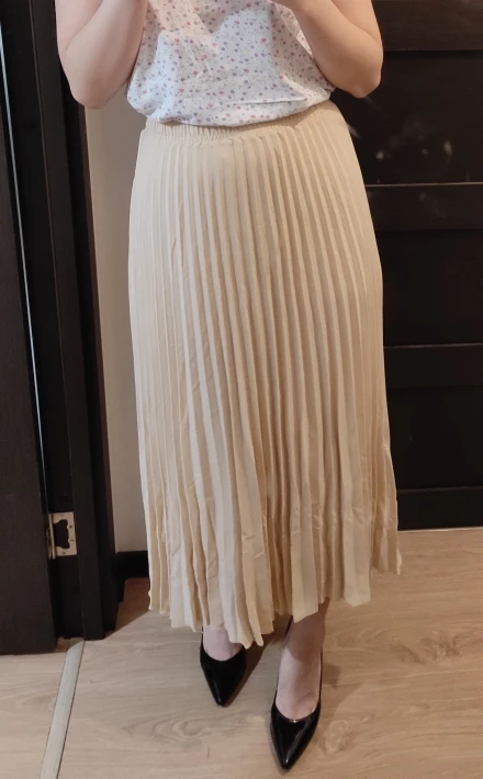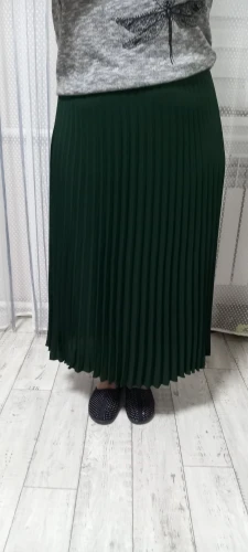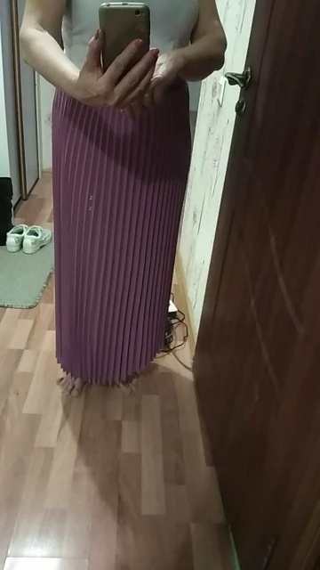 Юбка понравилась, размер L в самый раз на талию 82 см и бедра 104 см, длина на мой рост 162 - по щиколотку. Материал плотный, упругий, плиссировка ровная, подкладка хорошая и длинная (см на 10 короче самой юбки). Упакована в узкий длинный пакет для сохранения плиссе. Немного помялась, но надеюсь, что отпарю. Доставка всего 2 недели! Спасибо, рекомендую продавца и товар!