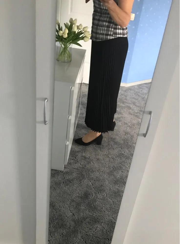 Юбка отлична! Длинная, почти до щиколотки! Сидит шикарно! И не мятая! Спасибо! Ещё закажу другого цвета!