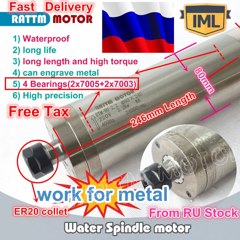 Мотор-шпиндель с водяным охлаждением, 220 кВт, 4 подшипника, ER20, в