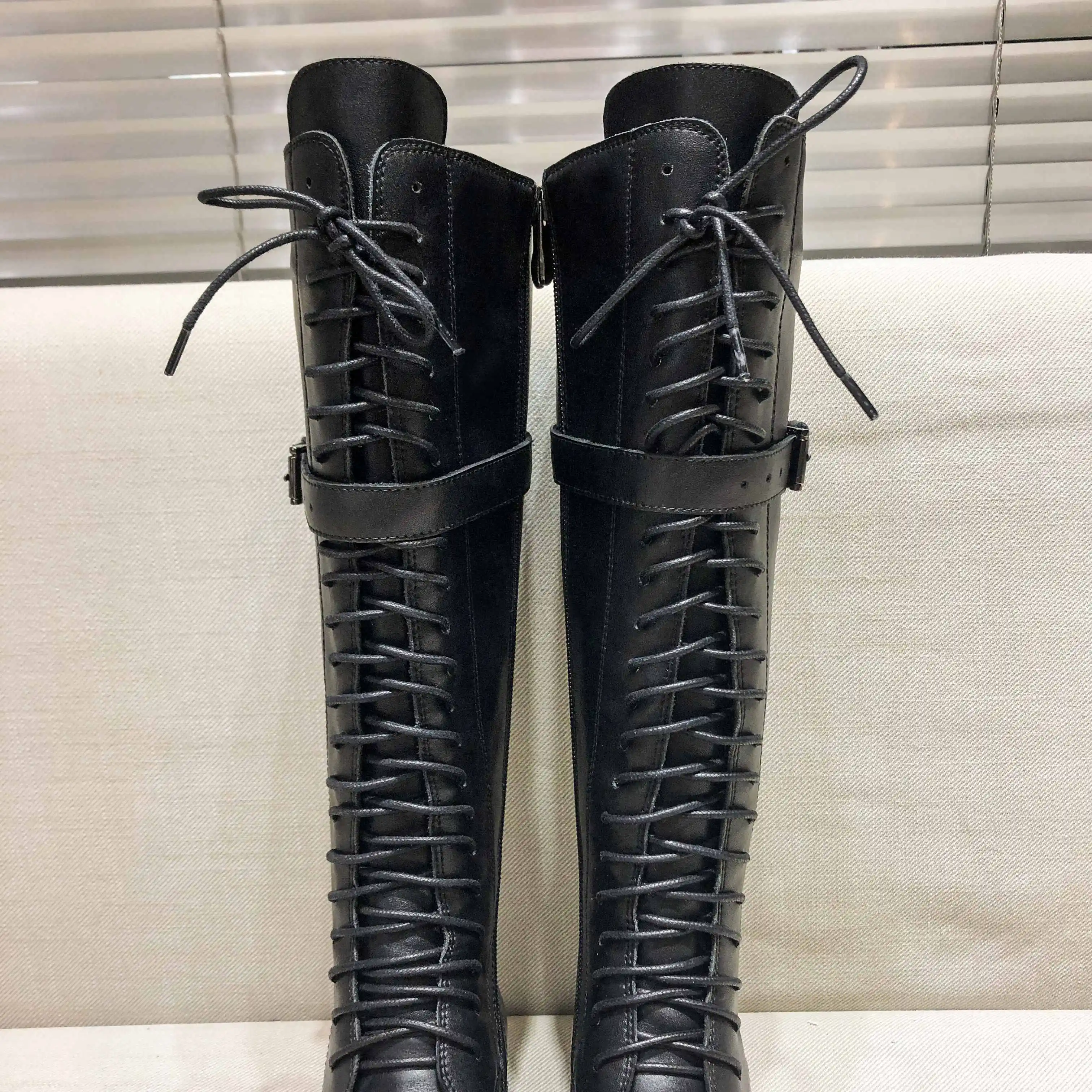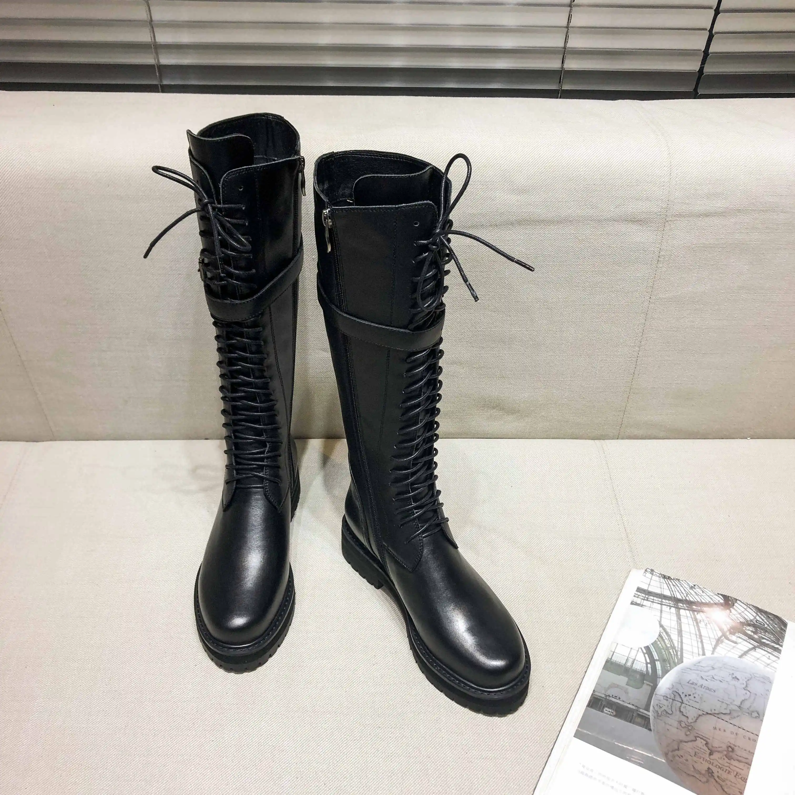 Сапоги из натуральной кожи на шнуровке, на среднем каблуке, с круглым носком, в стиле панк, Сапоги выше колена, l35, застежки-пряжки
