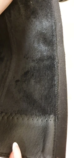 Сапоги суперские, очень комфортные. На стопу 25 см подошли отлично, нигде ничего не жмёт и не давит. Спасибо продавцу за теплые носочки и заколку. Внутри мягкий короткий плюш.
