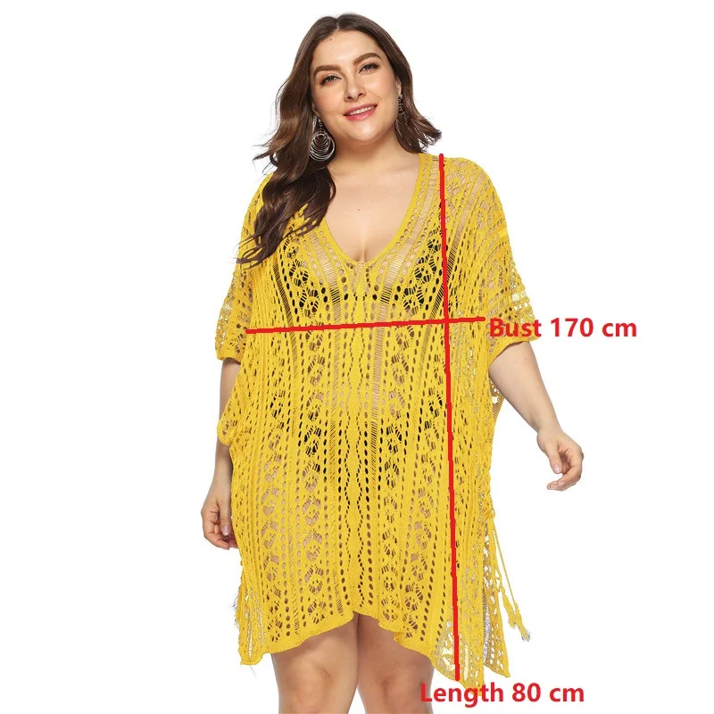 Вязаные пляжные платья и туники, желтый ажурный купальник, накидка с V-образным вырезом, асимметричная пляжная одежда красного цвета, 14 цветов, размера плюс