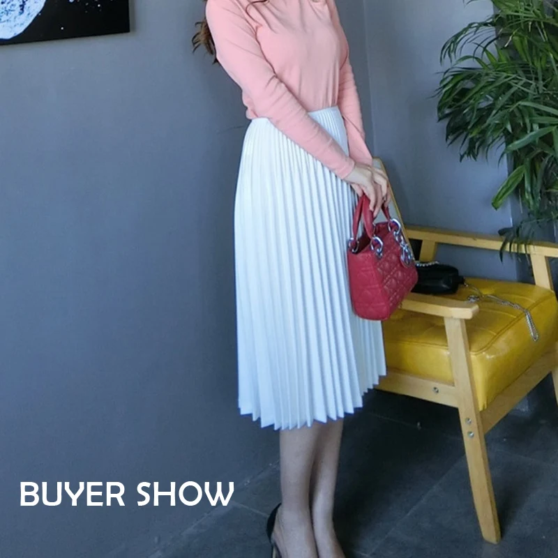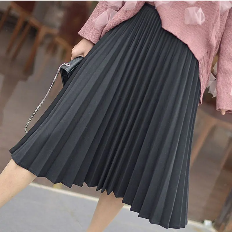 Женская плиссированная юбка, элегантная белая юбка средней длины с эластичным завышенным поясом, черная юбка на осень и зиму, SK398, 2021