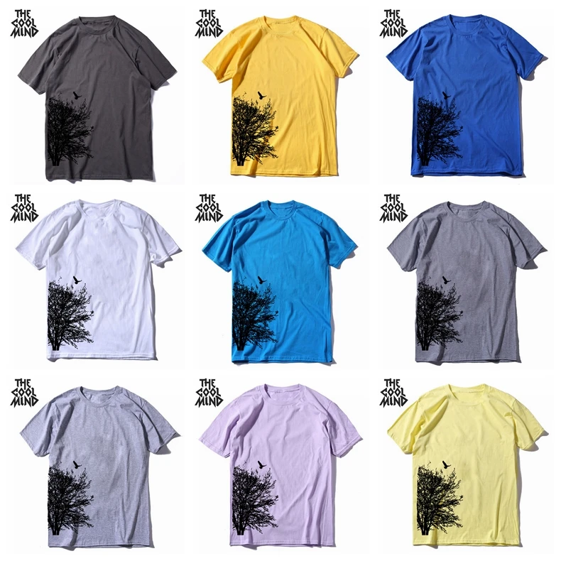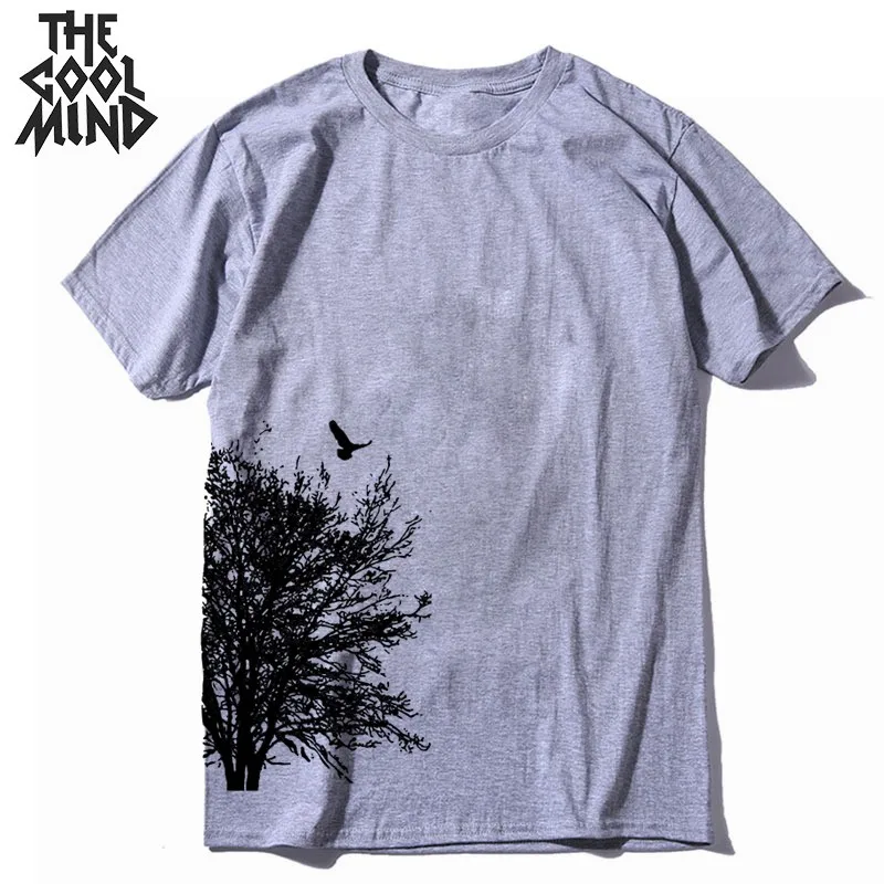 Летняя креативная Мужская футболка COOLMIND из 100% хлопка с коротким рукавом и принтом дерева, Повседневная Свободная Мужская футболка, крутая футболка с круглым вырезом