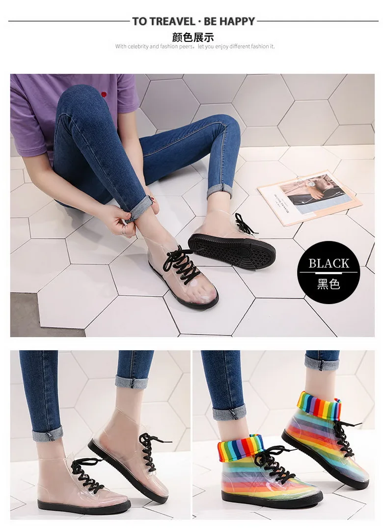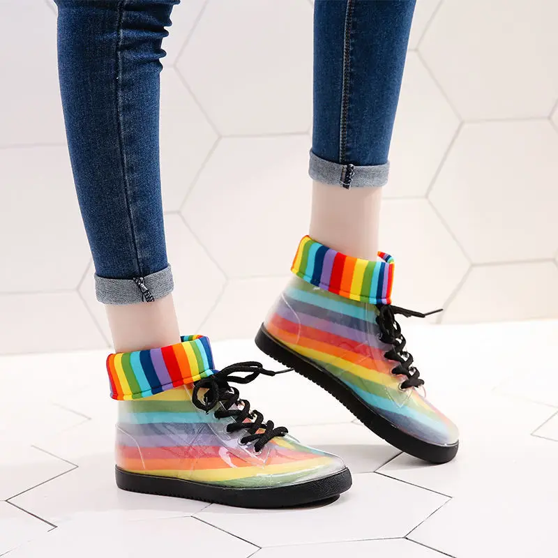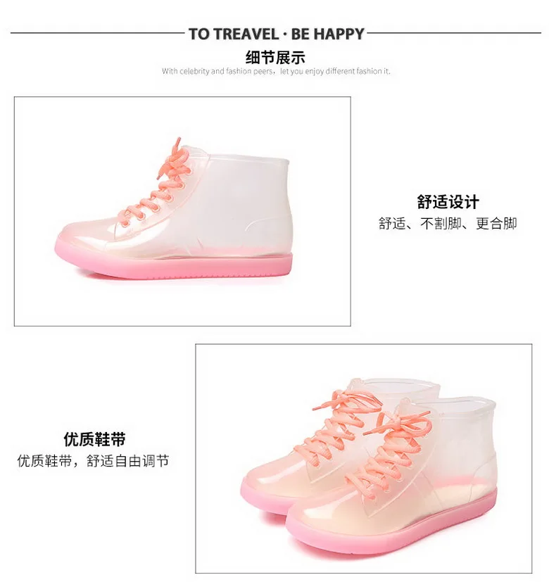 Резиновые сапоги прозрачные желейные, женские модные противоскользящие водонепроницаемые сапоги, резиновые галоши для девочек, школьные сапоги для дождя, дропшиппинг
