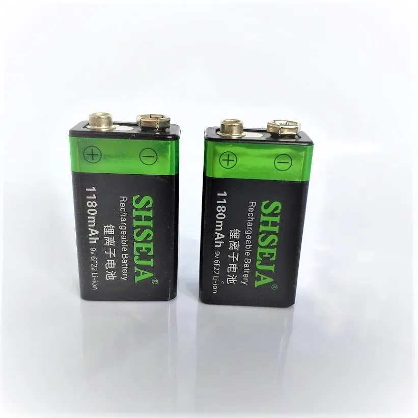 2 шт., литий-ионные аккумуляторные батареи 9 В, 1180 мАч