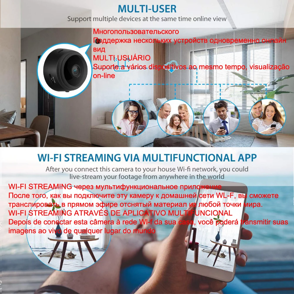 «СУПЕР КОМПАКТНАЯ и ПОРТАТИВНАЯ КАМЕРА»: Камера является одной из самых маленьких камер в мире (0,9 х 1,69 х 1,69 дюйма,1 унция) и работает на 2,4 ГГц Wi-Fi, что делает ее идеальной для слежения за объектом вашей любви или заботы. Вы можете разместить эту камеру в углу дома, офиса, магазина, автомобиля, даже в кармане или на рюкзаке благодаря сильному магниту, который крепится к любому железному предмету. Кроме того, ее также можно использовать в качестве камеры безопасности, автомобильного видеорегистратора, камеры для питомца, видеоняни.