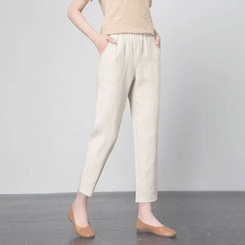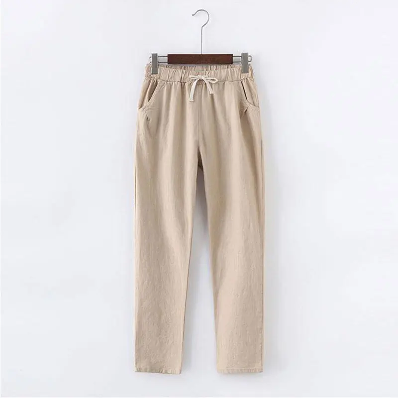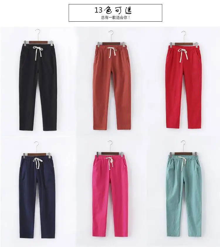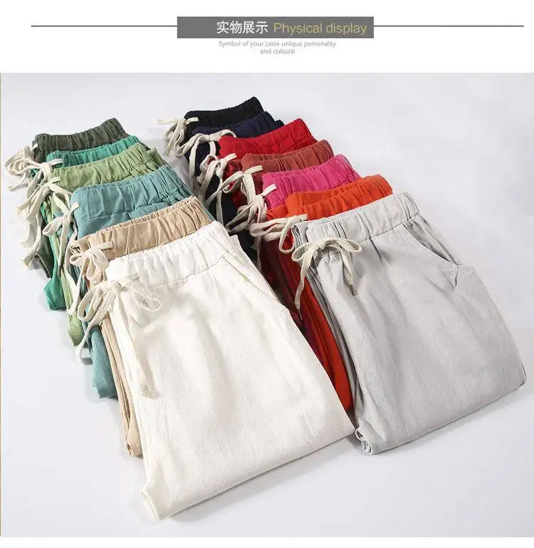 Брюки-султанки женские из хлопка и льна, модные Универсальные штаны свободного покроя с высокой талией, в Корейском стиле, повседневные, D167, весна-лето размера плюс