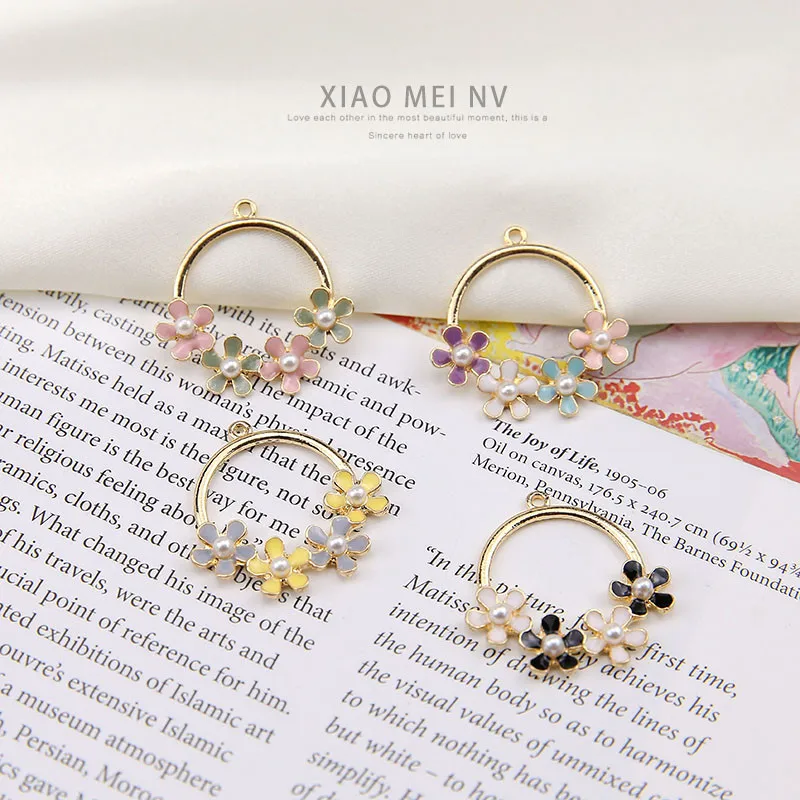 6 шт., 2020, новое корейское кольцо из сплава, пустотелое кольцо, маленькие серьги-кольца с цветком для женщин, материал подвески, сделай сам, ювелирные аксессуары для ушей