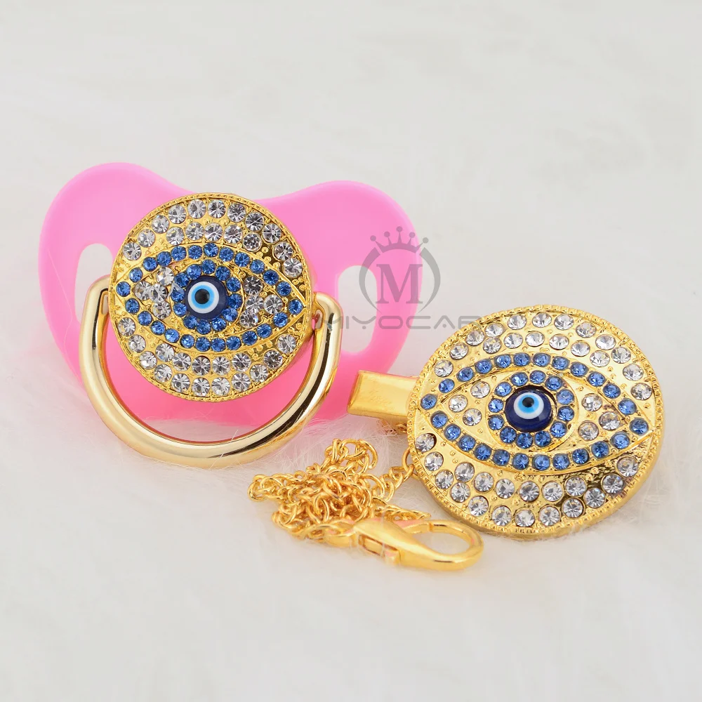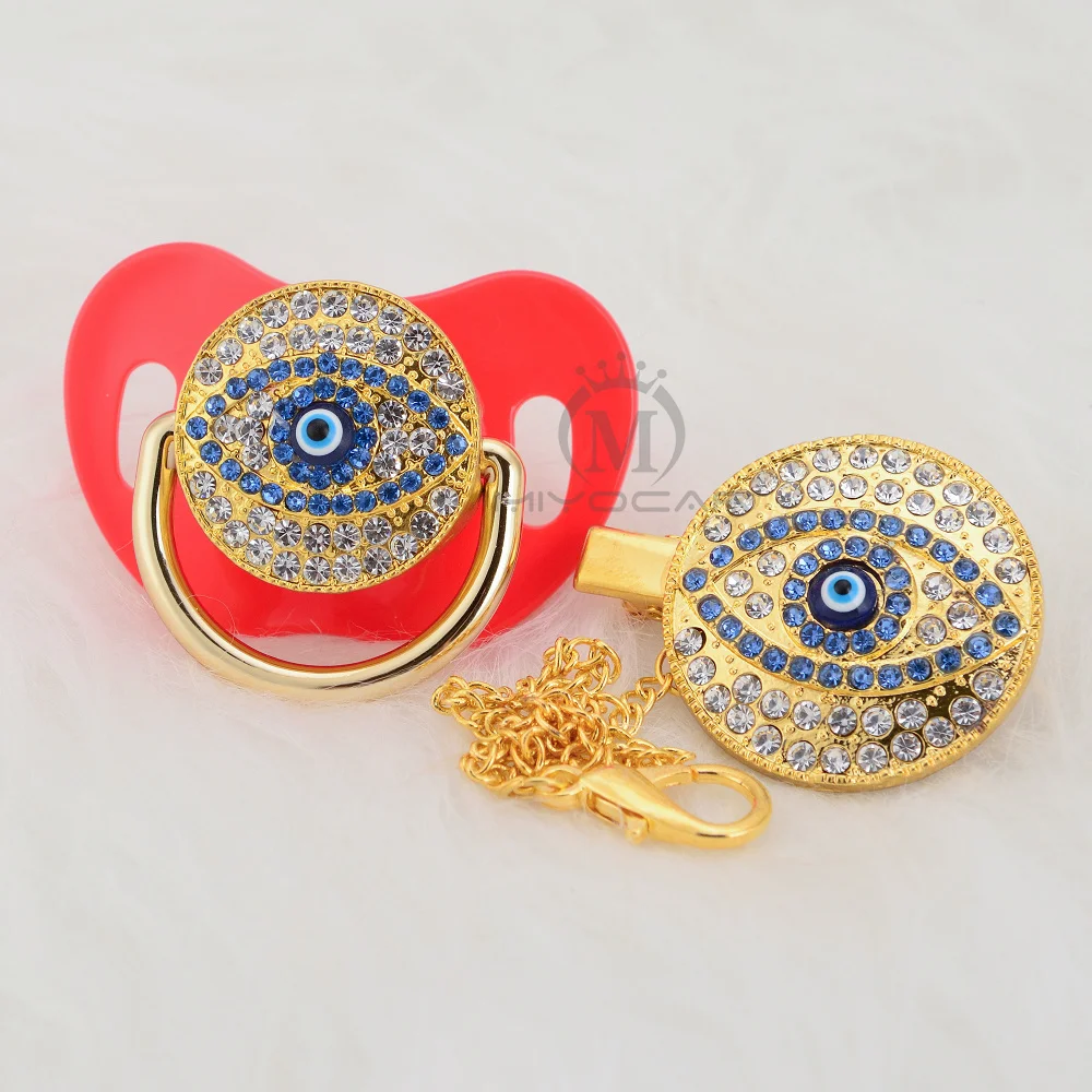Золотистая красивая соска от сглаза MIYOCAR, набор зажимов для соски, милая соска для глаз, зажим без бисфенола а, необычная блестящая соска