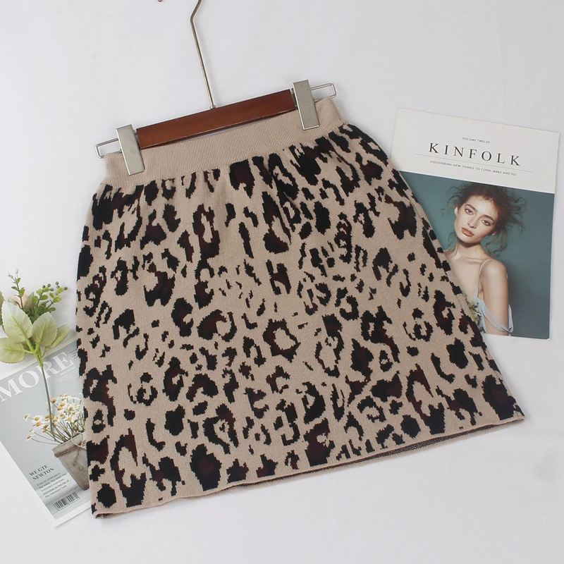 Юбка-карандаш Женская трикотажная, леопардовая, на осеньзиму
