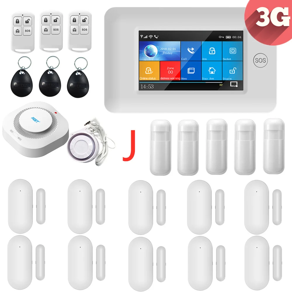 3G IOS Android 433 МГц сенсорный цветной экран беспроводная WIFI GPRS RFID карта умная домашняя охранная сигнализация системы с аксессуарами