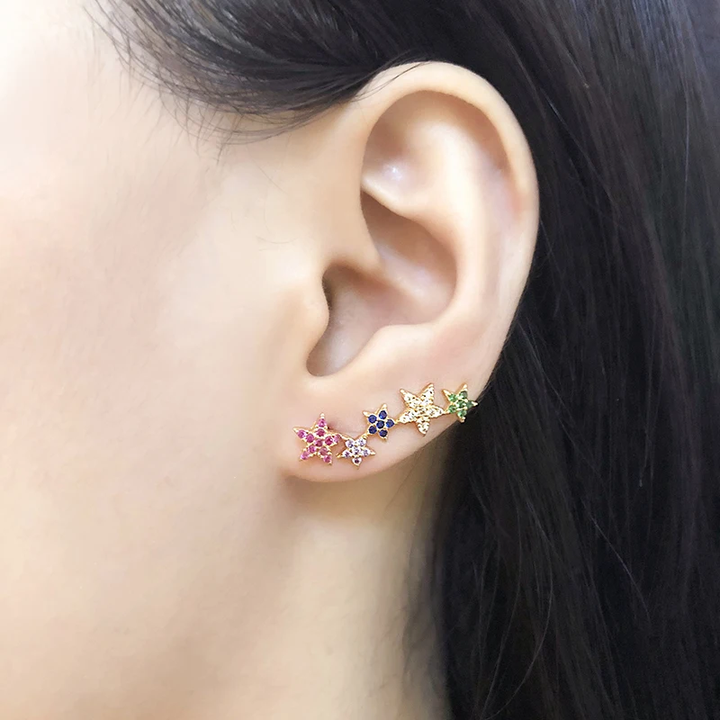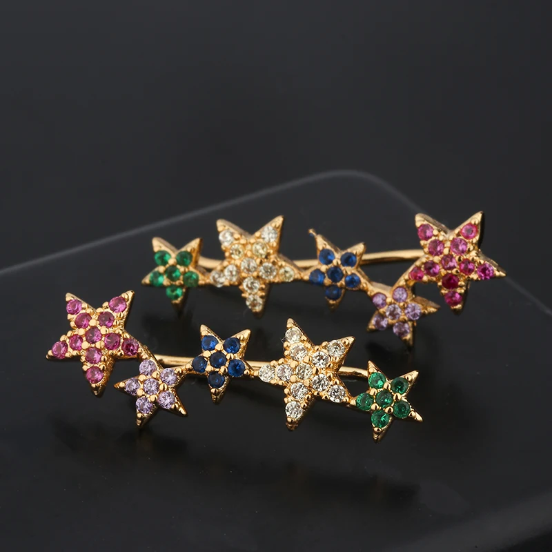 2021 изысканные красочные гибочные серьги-гвоздики с фианитами класса ААА в виде пентаграммы, модные ювелирные изделия, свадебный подарок, женская мода