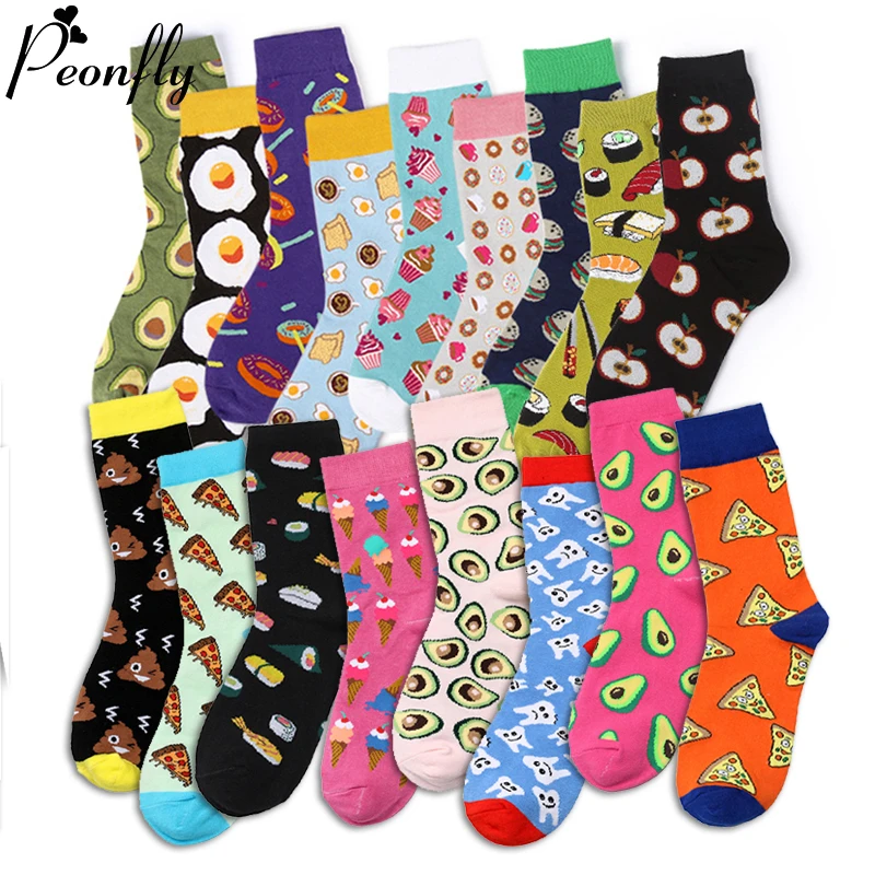 PEONFLY Новинка корейские свежие фрукты забавные женские носки лимон авокадо ананас черешня Happy носки повседневные Харадзюку хлопковые носки