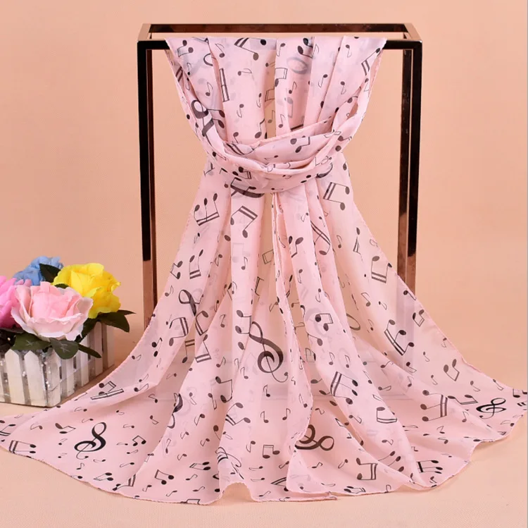 Шарф женский шифоновый с музыкальными нотами, 1 шт.