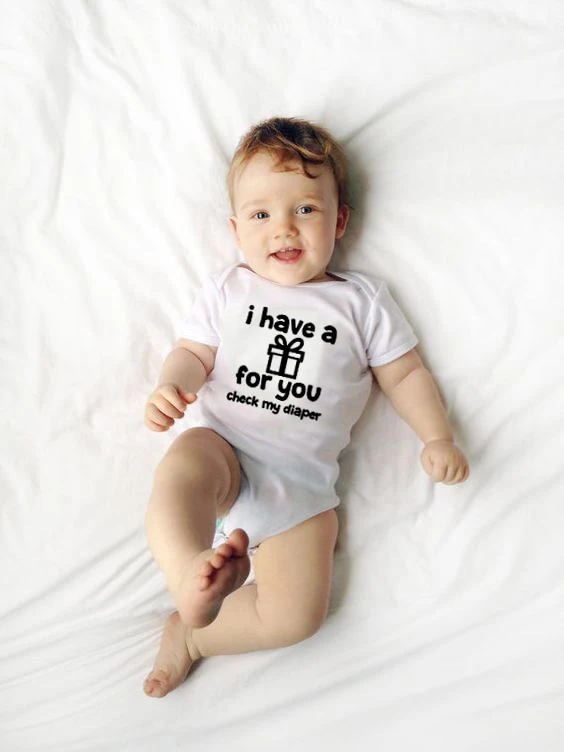 У меня есть подарок для вас проверить свой подгузник для детей Летняя BabyBodysuit для маленьких мальчиков и девочек, забавные короткий рукав комбинезон