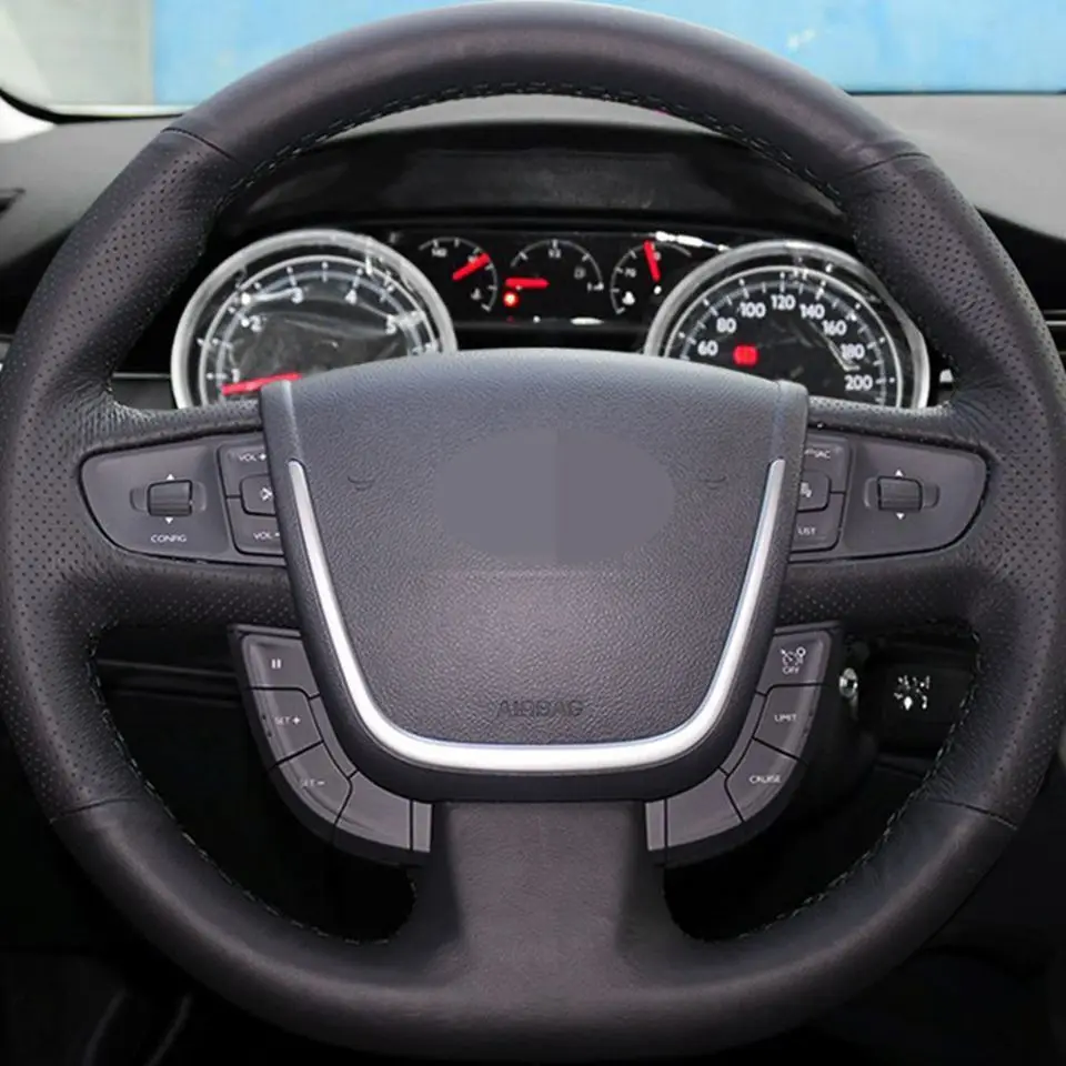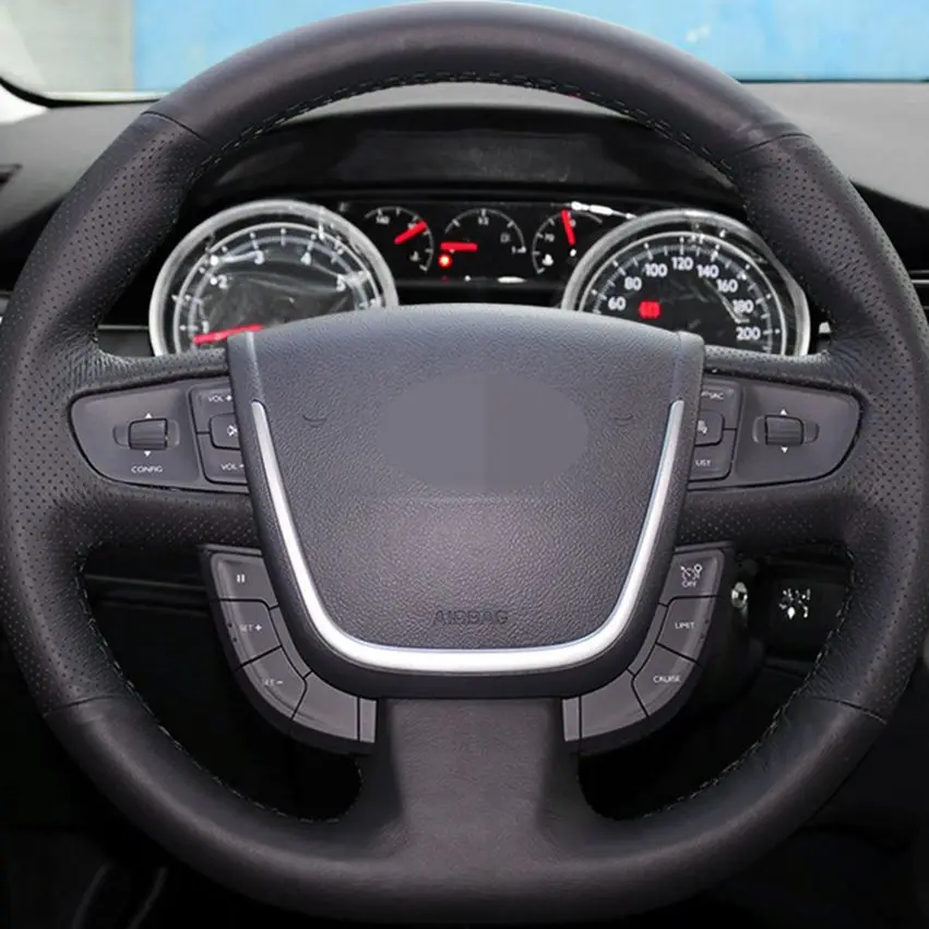 Черные чехлы на руль из искусственной кожи ручная строчка для Citro...