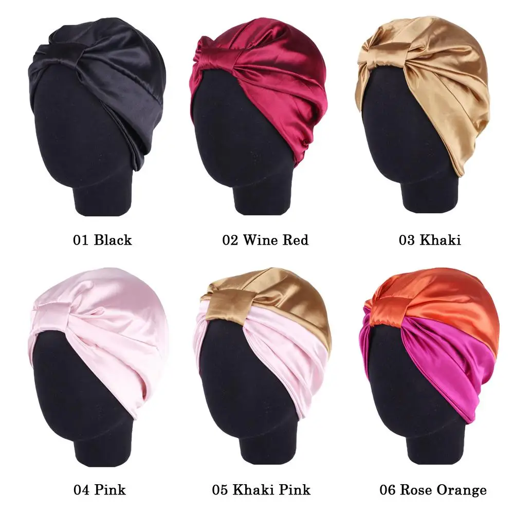 Шелковый Тюрбан капот для женщин атласная шапка эластичная повязка ...