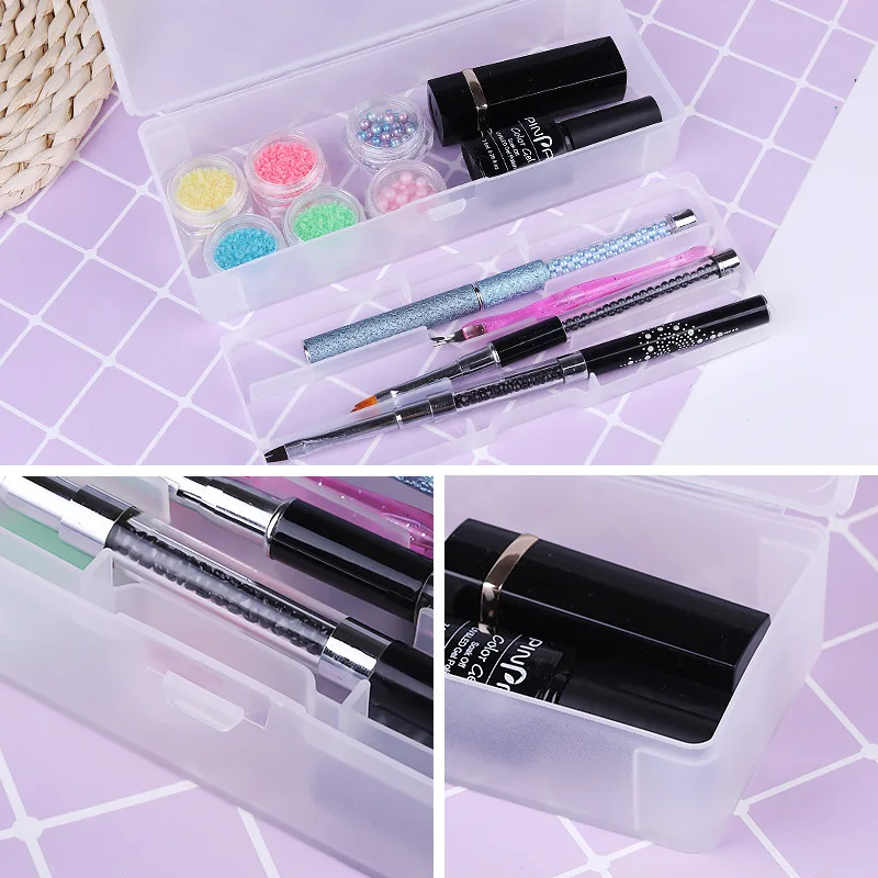 Прямоугольный двухслойный инструмент для дизайна ногтей, пустой ящик для хранения, пинцет, кусачки, ручки, полировка, полировка, пилочки для ногтей, пластиковый контейнер, 1 шт.
