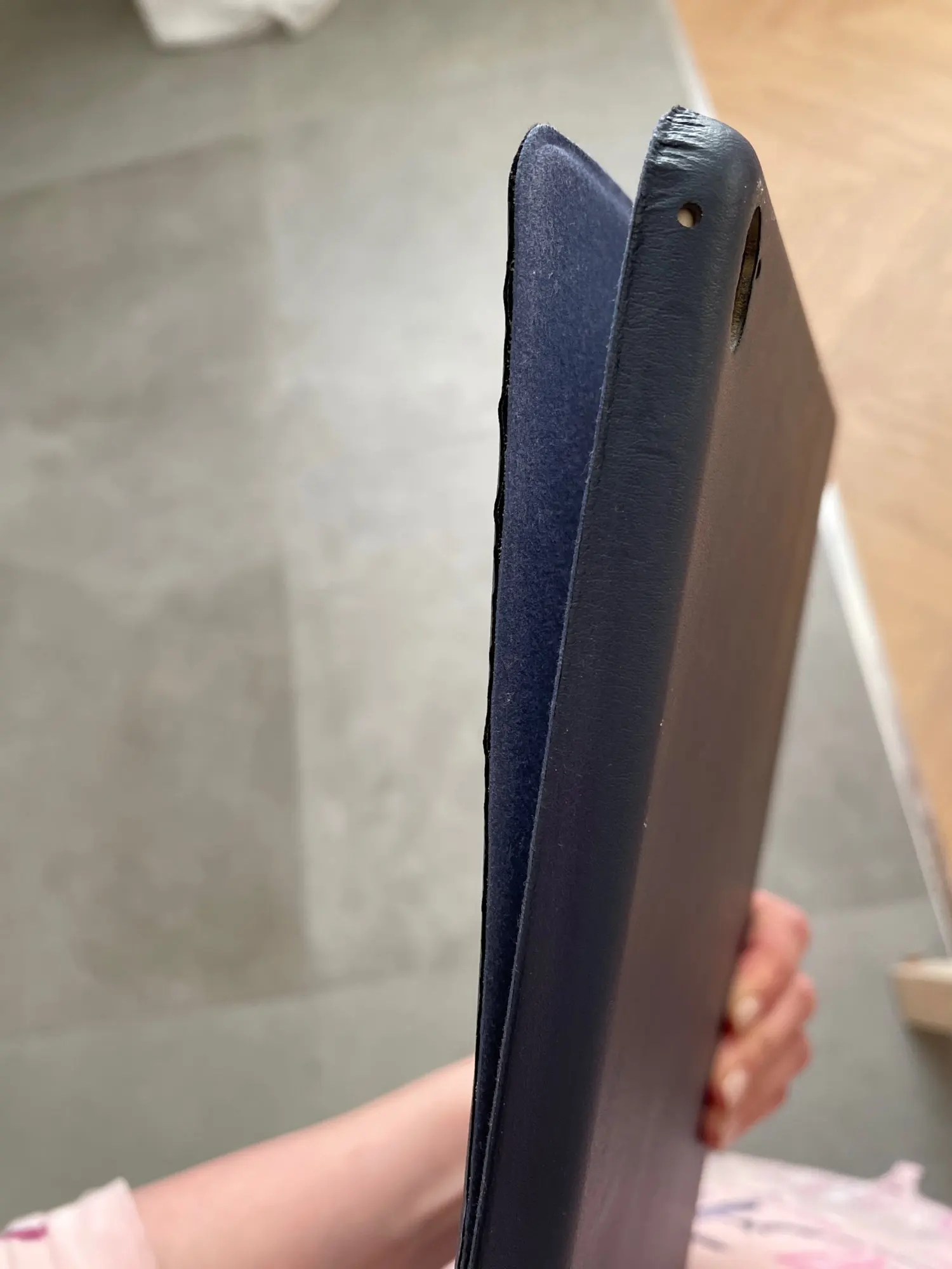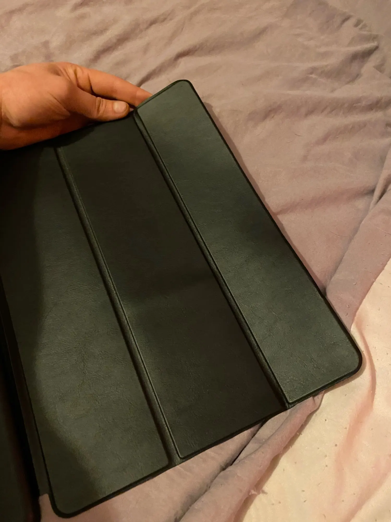 Чехол хороший, сел хорошо, при открывании айпад включается из рук не выскальзывает, материал приятный все отверстия хорошо обработаны, нигде нет клея или лишнего материала, только униатки громкости и включения не имею четкой границы( если в темноте искать кнопки будет сложно найти) а так прекрасный чехол