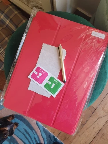 Чехол насыщенно красного цвета, в подарок салфетки и стилус. Пришла посылка очень быстро, упаковка надежная. С продавцом не общалась. Чехол понравился, но есть один недочет- края верхней крышки прилегают не полностью. В старом чехле по краям были магниты и крышка не задералась,в этом чехле магнитов нет. Может быть со временем края «притрутся», посмотрим.