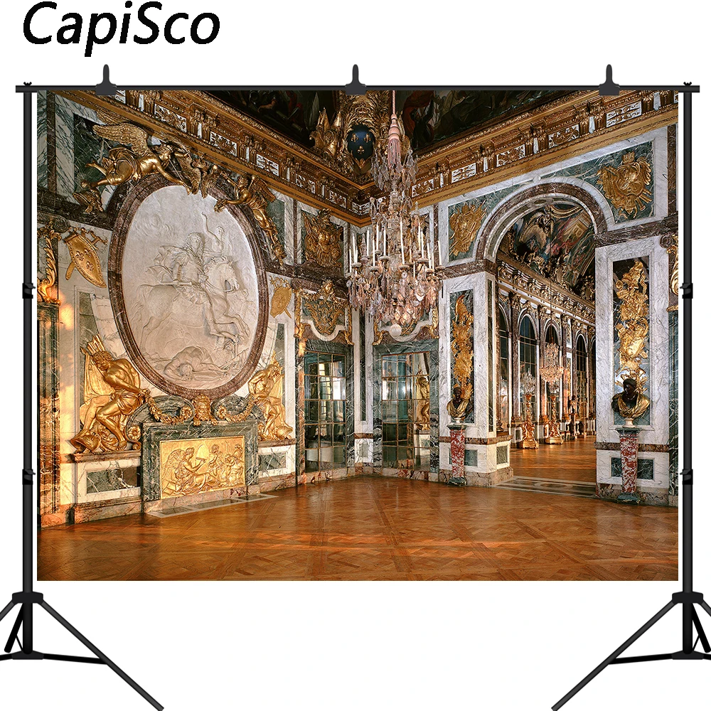 Роскошный роскошный золотой дворец хрустальная люстра дверь Арка свадебные фотографии фоны для помещений Живописный фон для фотостудии
